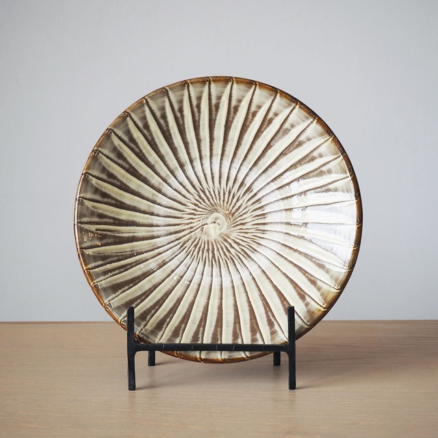 使い勝手の良い8寸皿。小鹿田らしい打ち刷毛目で飽きずに使えそうです。 炒め物などを無造作に盛ったり、ちょっとおしゃれに前菜を美しく配置したり。毎日でも使いたい品。 カフェのランチプレートみたいな使い方もできるサイズです。 サイズ:約φ24.0×H4.5cm カテゴリ:陶器 産地:大分県日田市/小鹿田焼 江戸中期から300年以上、一子相伝で受け継がれてきた小鹿田焼。 今なお土を砕くのは唐臼、成形は蹴ろくろ、焼成は登り窯という元来の製法を守っており、国の重要無形文化財に指定されています。 ※手仕事の品ですのでサイズはおおよそで、同じ形でも個体差があります。作りの粗い部分があることもご了承下さい。 ※実物に近いように撮影しておりますが、画像と色が若干違って見える場合もございます。ご理解の上ご購入下さい。 ※陶器は電子レンジ・食洗器ともにお使い頂けますが、長くお使いになりたければ控えめがおすすめです。また、食洗器は置き方によっては欠けやすいのでご注意ください。 ※陶器のご使用前には目止めをされることをおすすめします。 ※環境への配慮からエコ包装を心掛けております。ご理解ご了承下さい。 ※2~3日中に出荷します。時間帯のご指定のみ可能です。お急ぎでなければお日にちのご指定も承りますので、ご希望の際はご記入下さい。