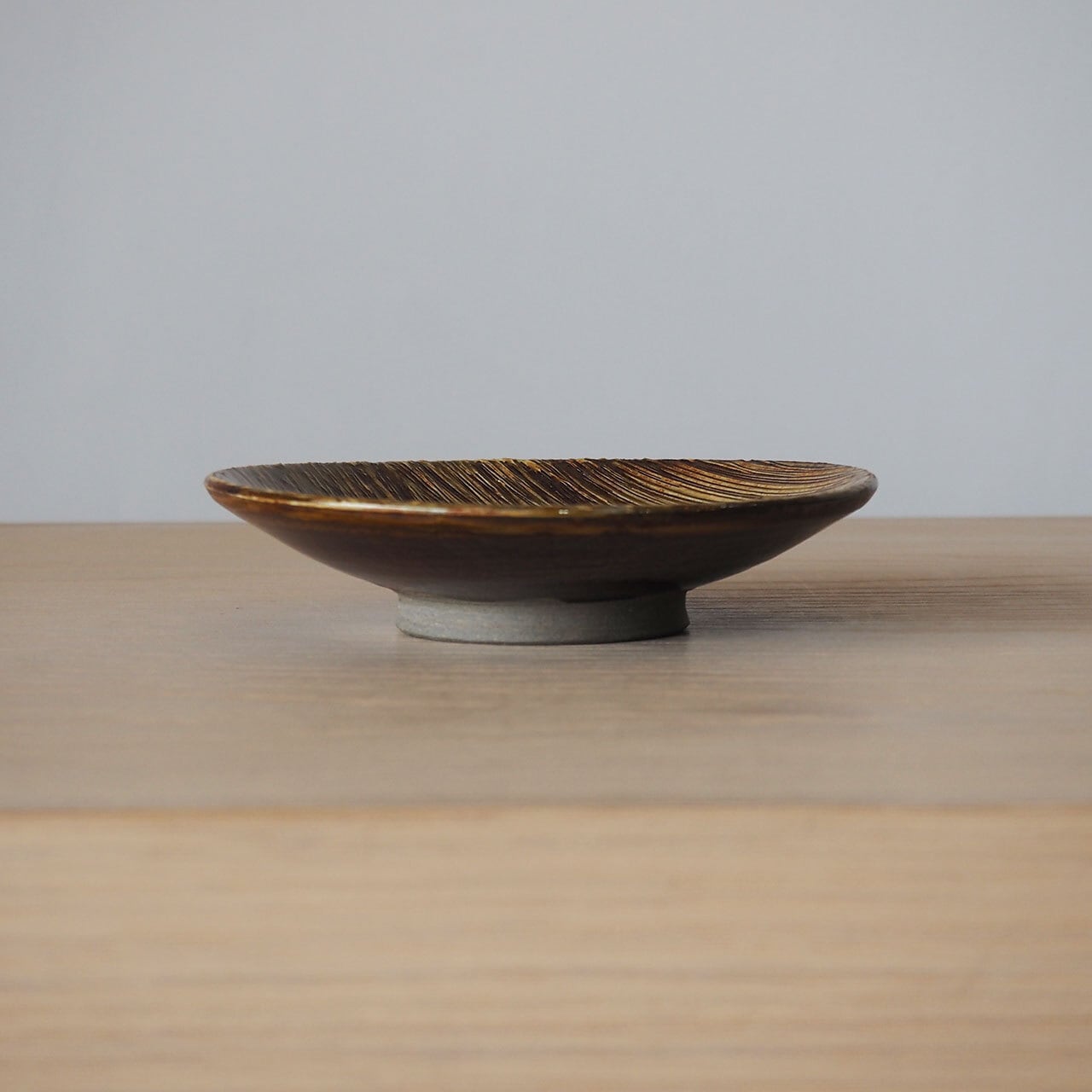 小鹿田焼 小袋製陶所 4寸皿(飴/藁引)