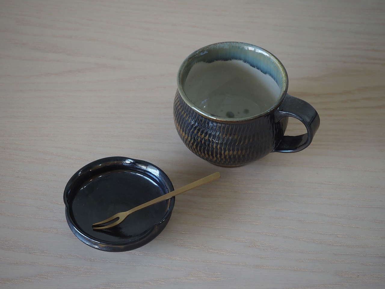 小鹿田焼 小袋製陶所 マグカップ(黒/飛び鉋)