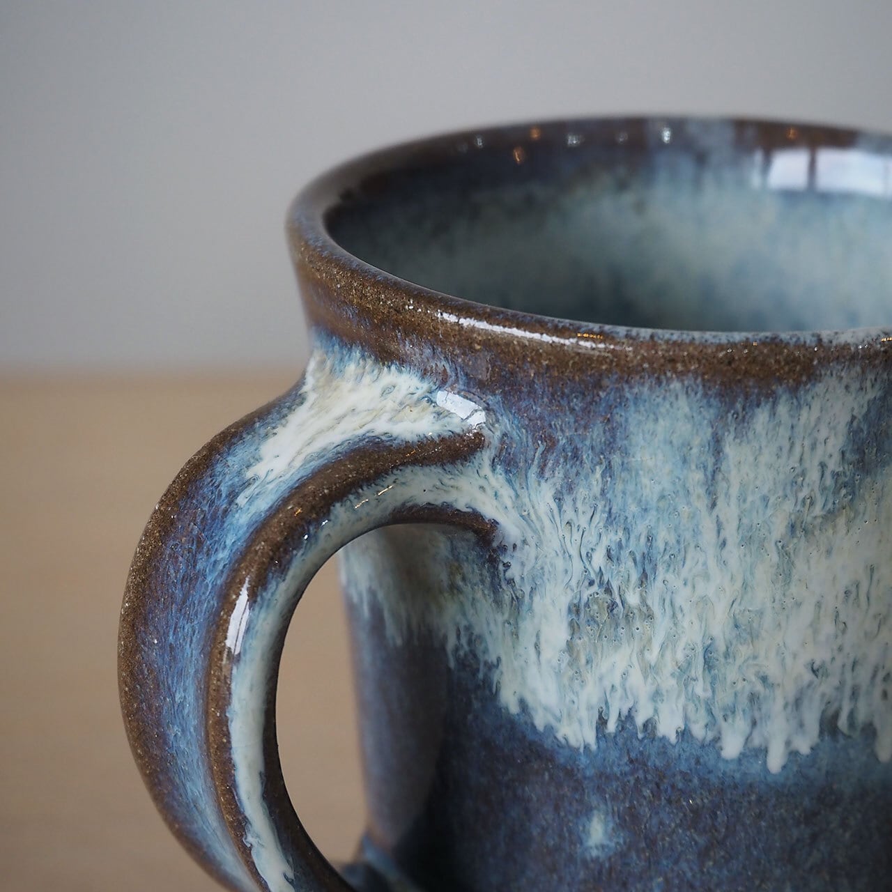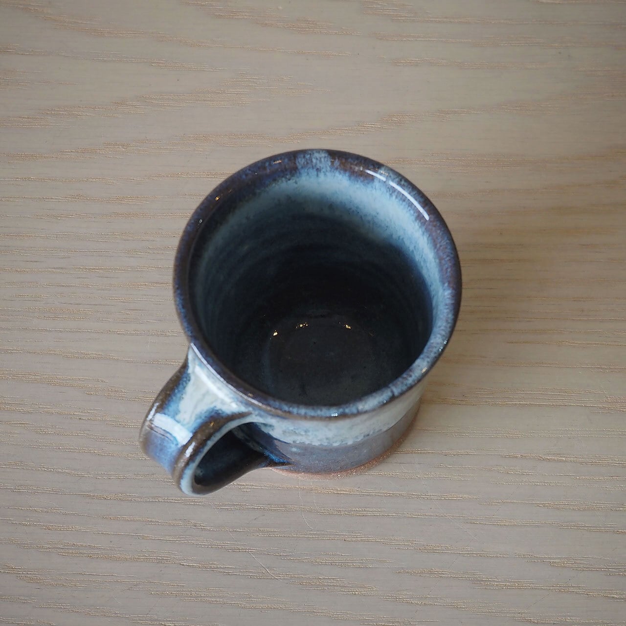 無造作に流れる釉薬がこれぞ小代焼、といった風情の美しいマグカップ。