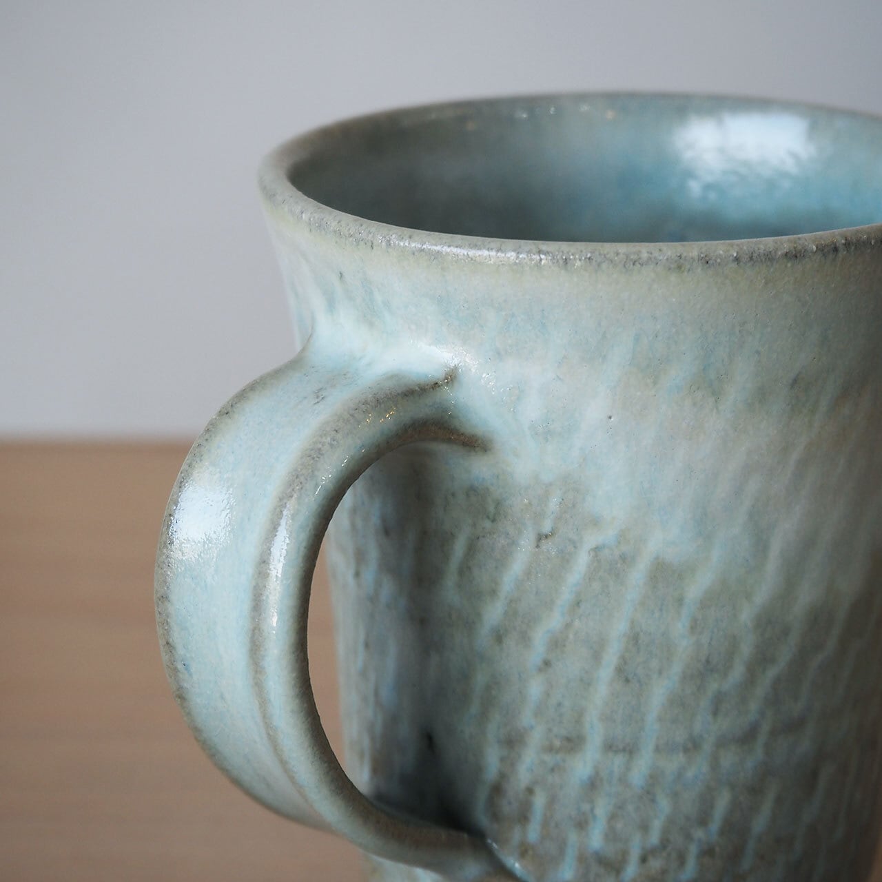 柔らかな黄味掛かった白に心和む、たっぷりサイズのマグカップ。