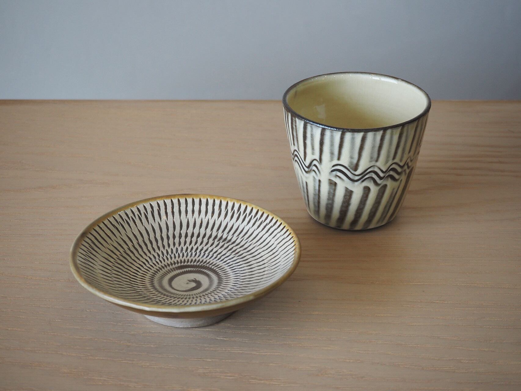 小鹿田焼 黒木昌伸窯 蕎麦猪口(白/刷毛に櫛)