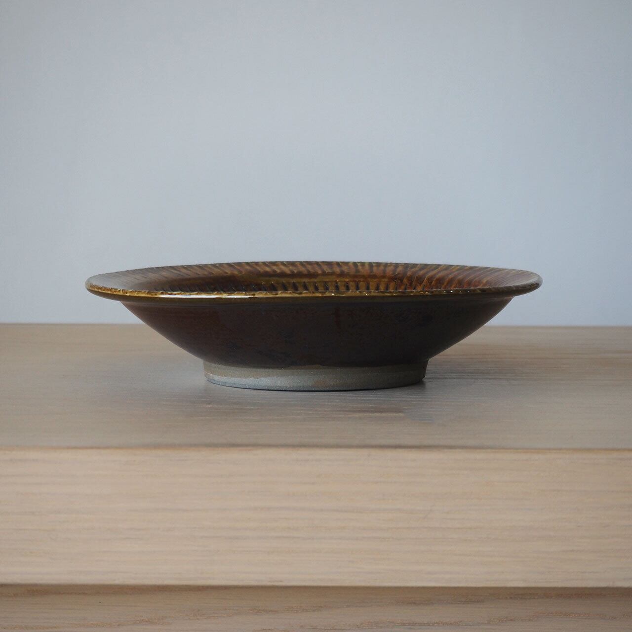 小鹿田焼 小袋製陶所 6.5寸皿(飴/飛び鉋・縁に刷毛)