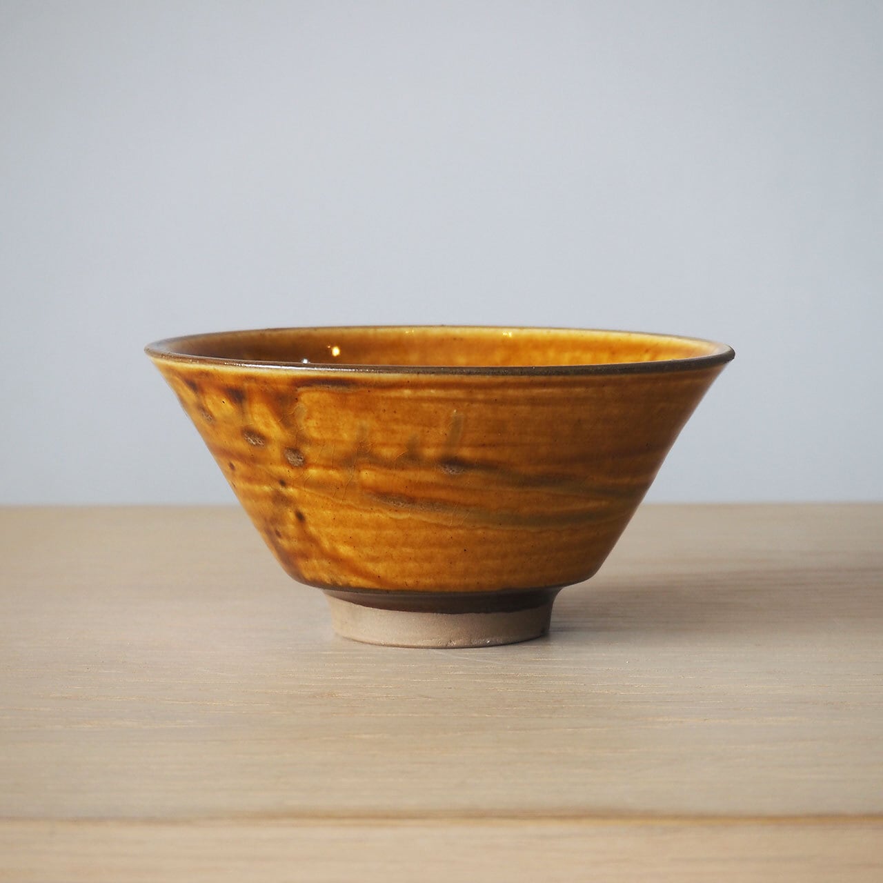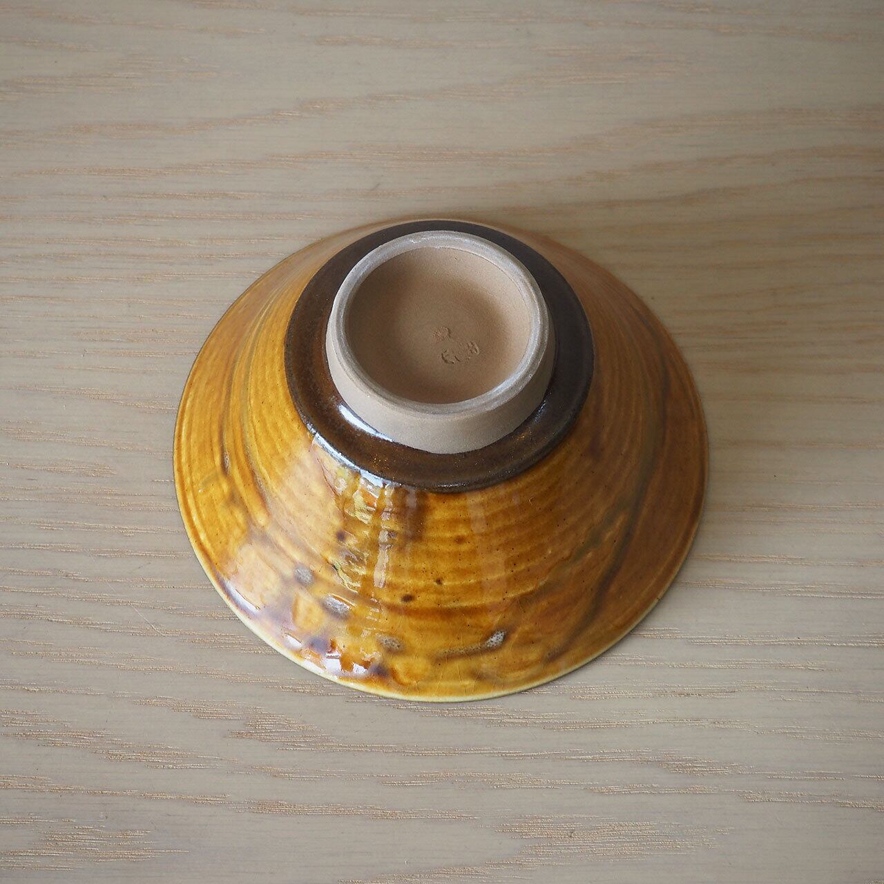 小鹿田焼 坂本浩二窯 4.5寸飯碗 朝顔型(飴/流し掛け)