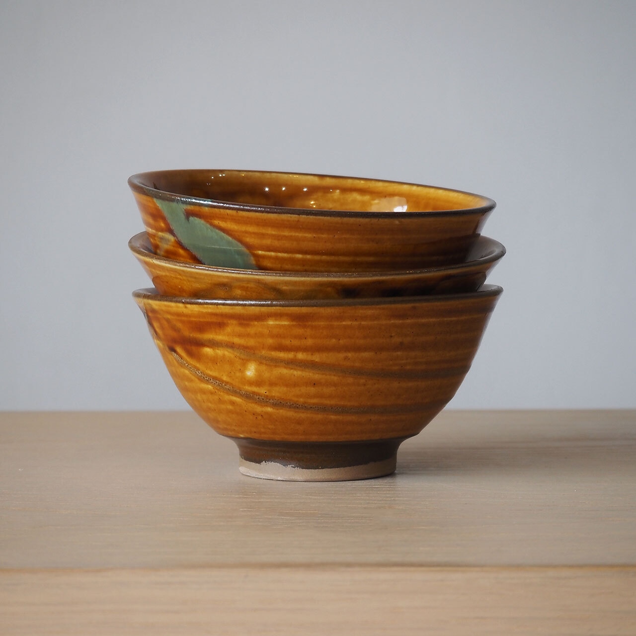 小鹿田焼 坂本浩二窯 4.5寸飯碗(飴/流し掛け)
