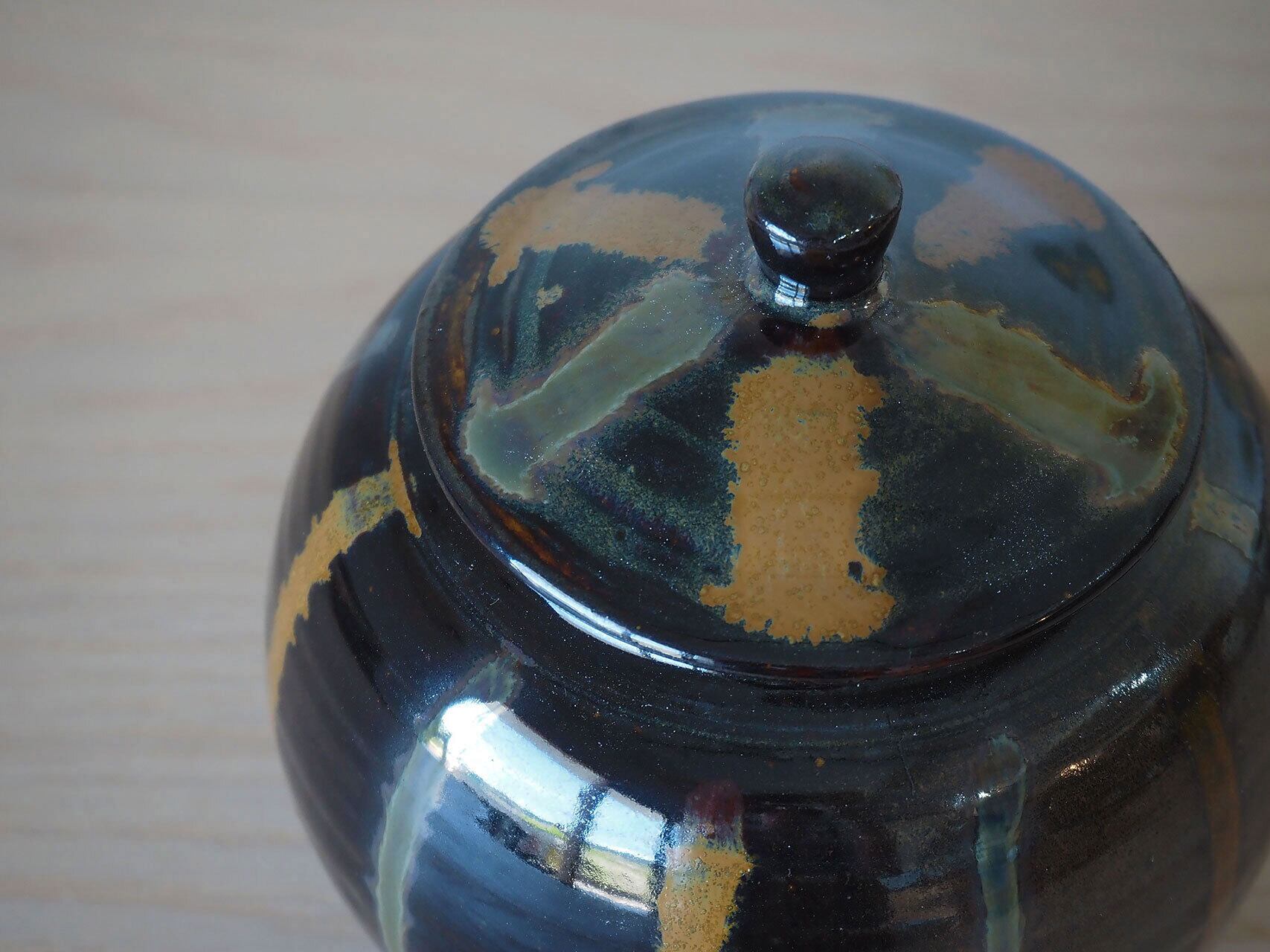 小鹿田焼 黒木昌伸窯 3合壺(黒/二彩流し)