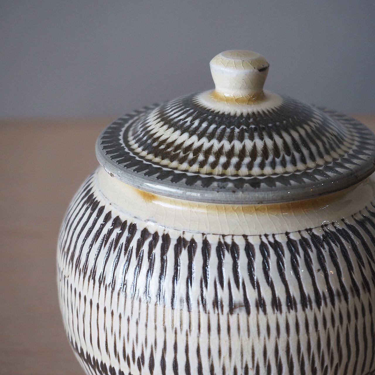 小鹿田焼 黒木昌伸窯 2合壺(白/飛び鉋)