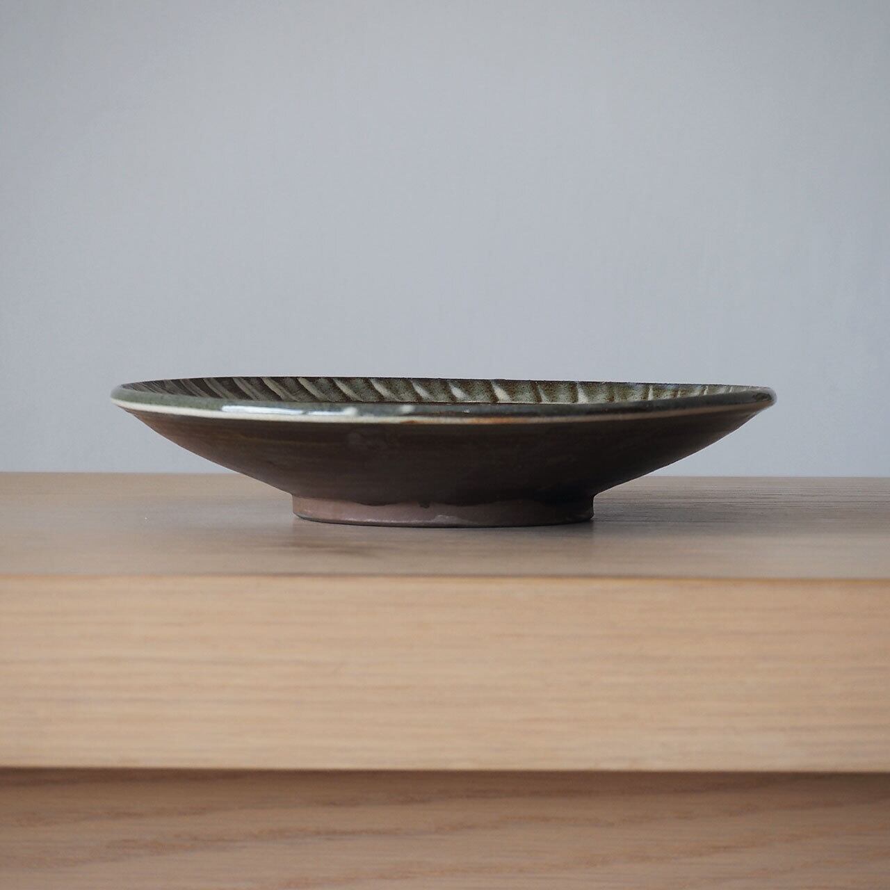 ちょっと珍しい、縁にだけさりげなく刷毛を打った7寸皿。