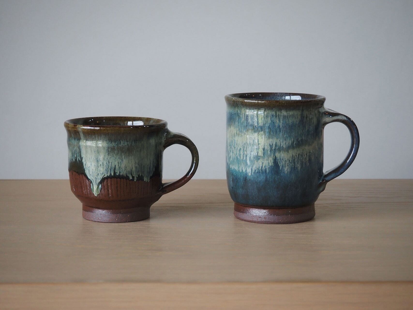 柿色の器体に流された釉薬が流れる様子が何とも味わい深い、小振りのマグカップ。