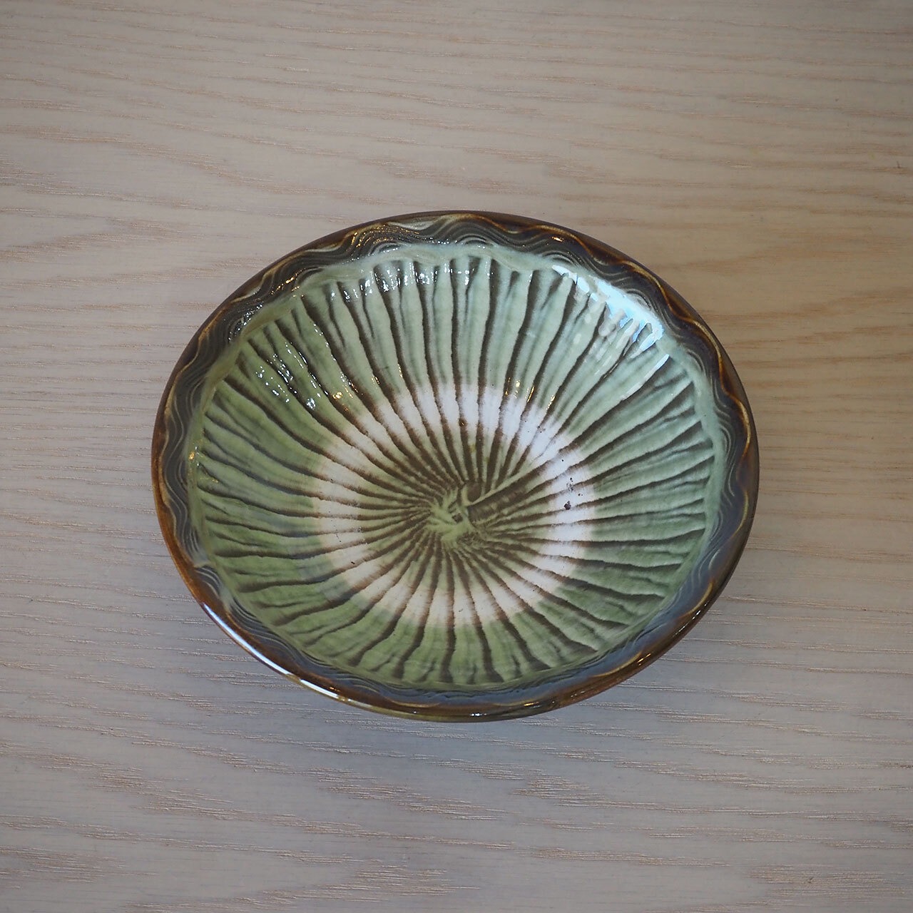 小鹿田らしい打ち刷毛目で、縁に施された櫛描きが良いアクセントになっています。