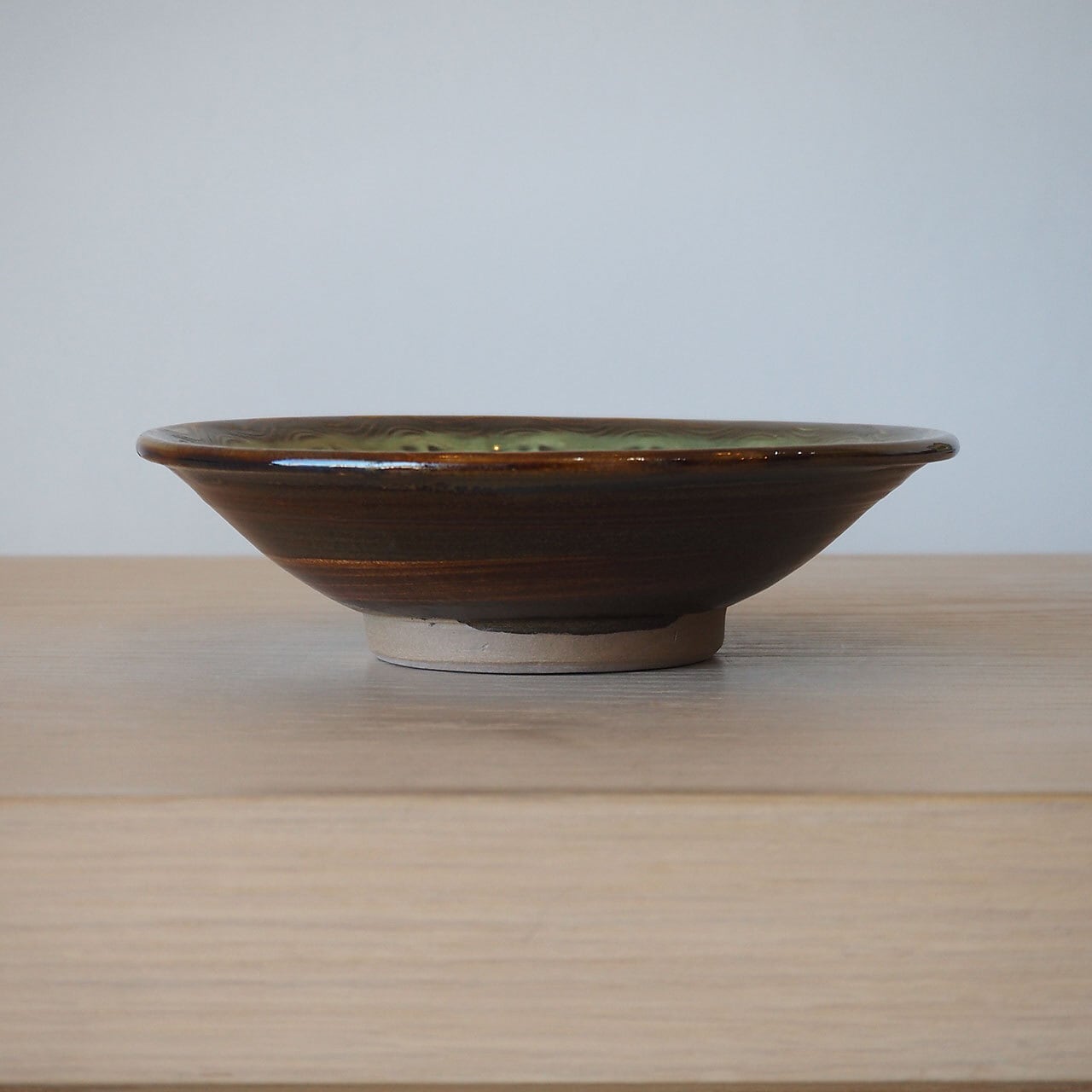小鹿田焼 黒木昌伸窯 6寸深皿(うす青/刷毛)