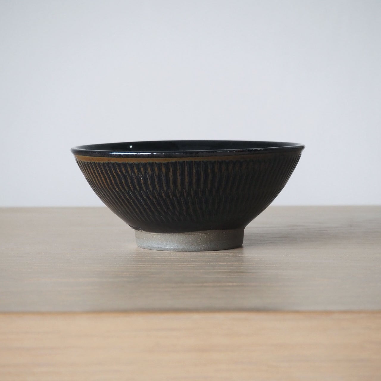 小鹿田焼 小袋製陶所 4寸飯碗(黒/飛び鉋)
