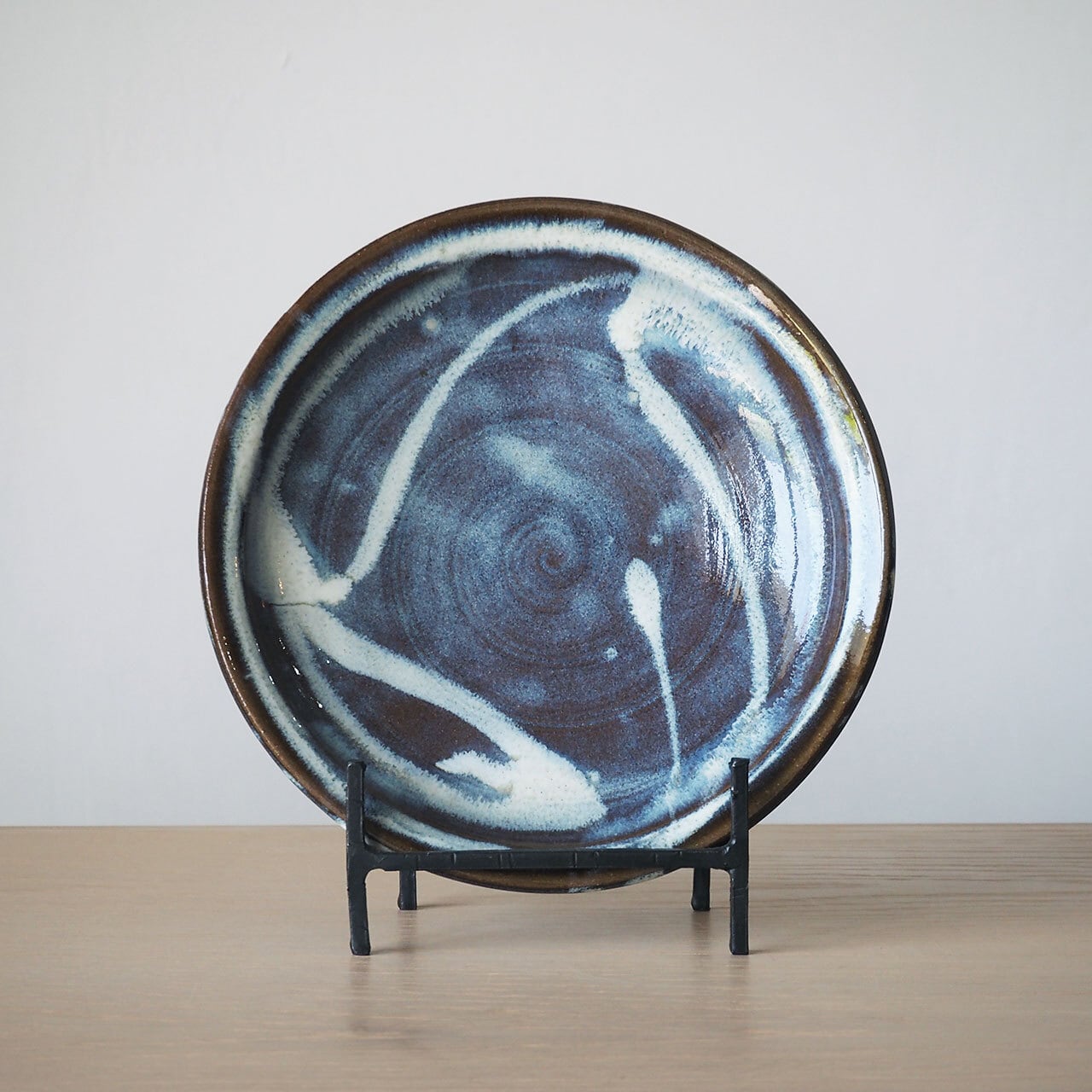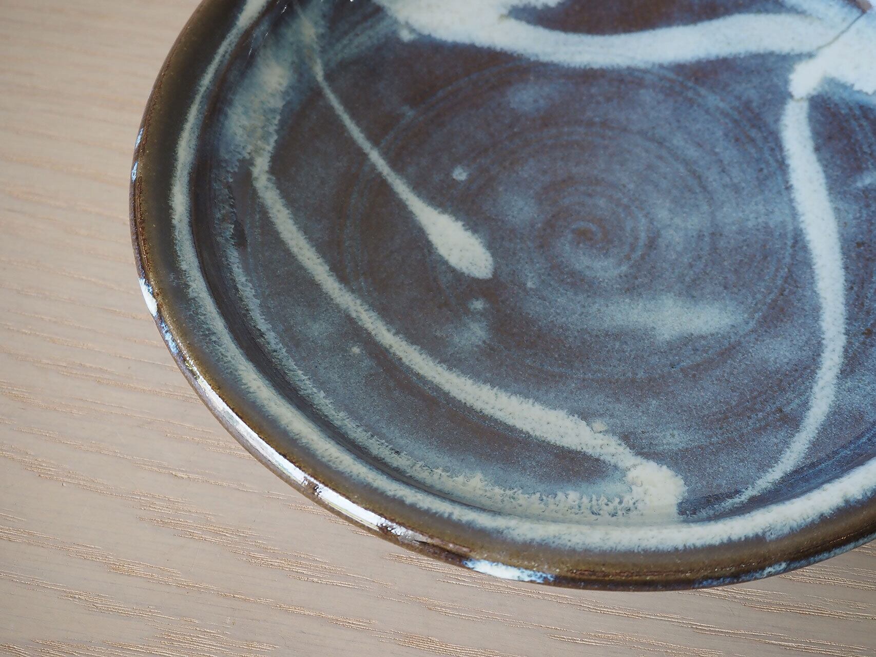 小代焼らしい青に、流し掛けられた釉薬の滲む様子が美しい7寸皿。