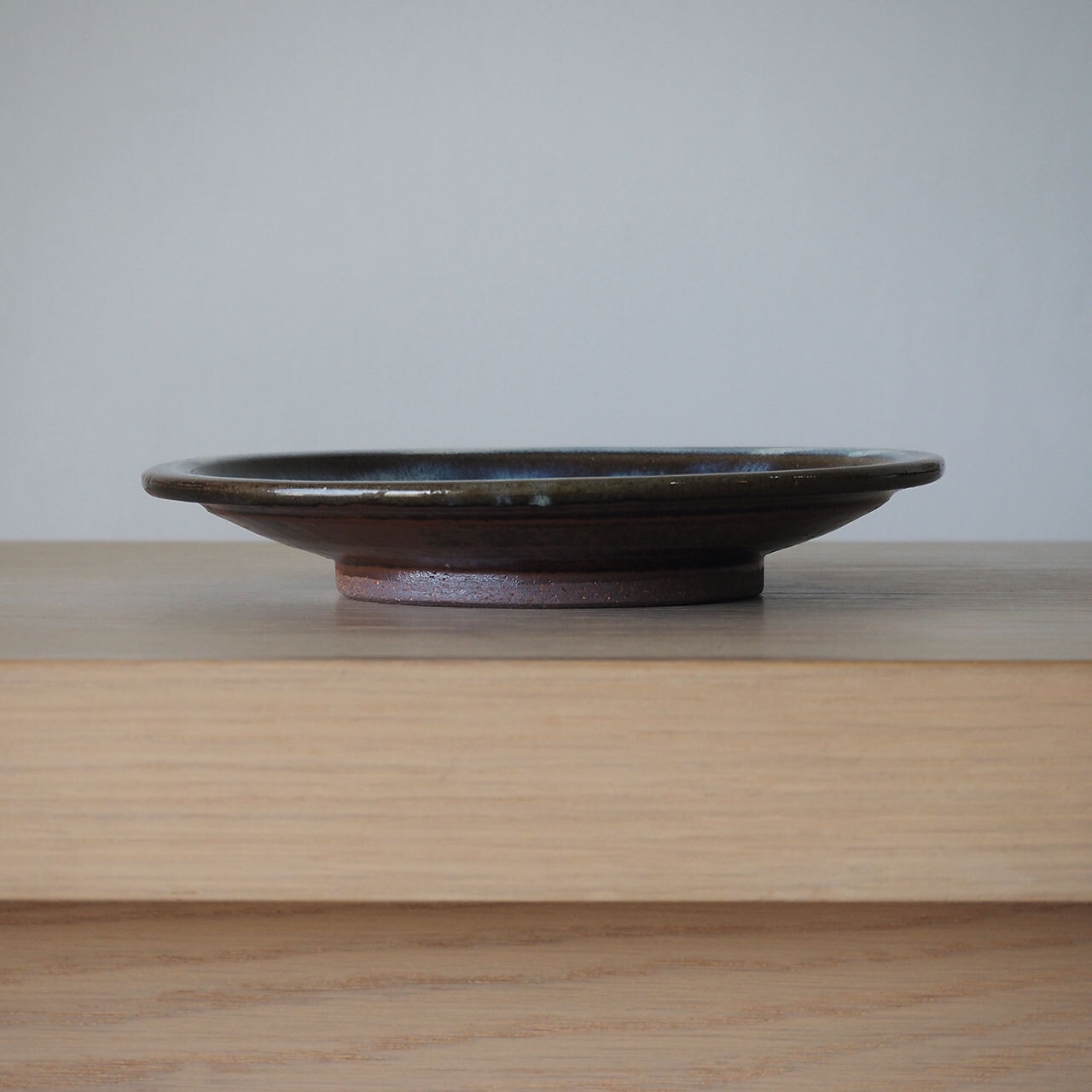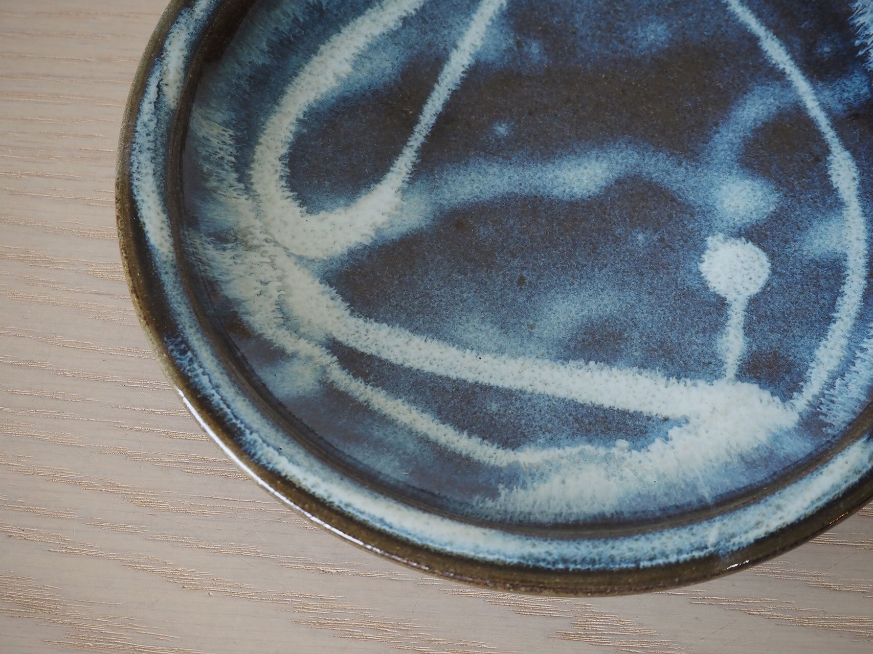小代焼らしい青に、流し掛けられた釉薬の滲む様子が美しい7寸皿。