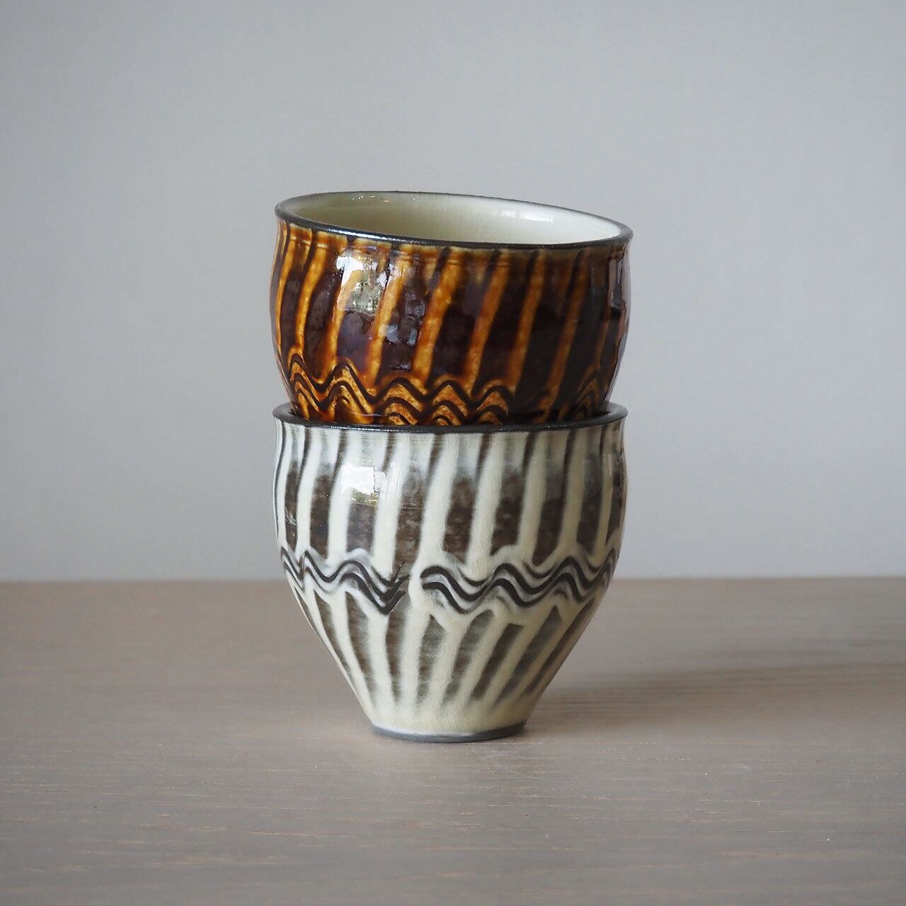 小鹿田焼 黒木昌伸窯 丸フリーカップ(白/刷毛に櫛)