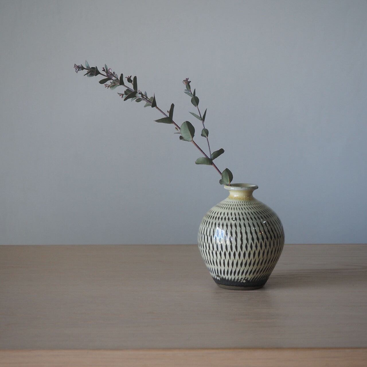 小鹿田焼 黒木昌伸窯 一輪挿し(白/飛び鉋)