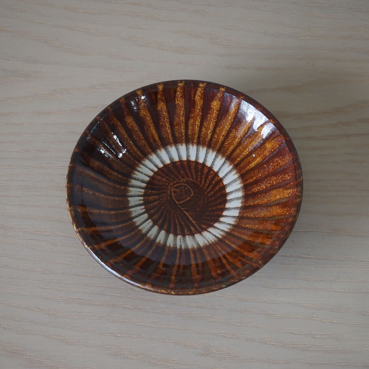 小鹿田焼 黒木昌伸窯 5寸皿(飴/刷毛)
