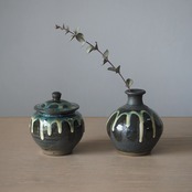 小鹿田焼 黒木昌伸窯 一輪挿し(白青なだれ流し)
