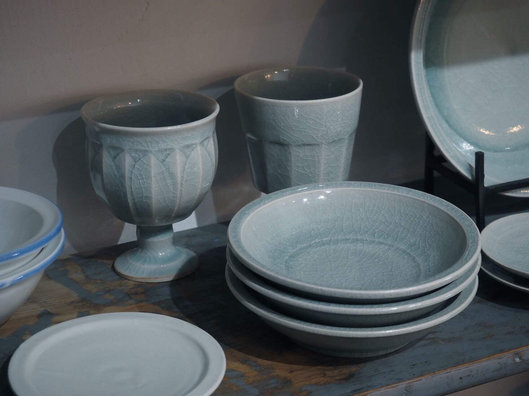 研究熱心な杉田さんらしく美しい釉薬(特に青磁)を使うのでついその色に目を奪われがちですが、ふもと窯での数物を作るという経験が活きた安定した素直な形も魅力。