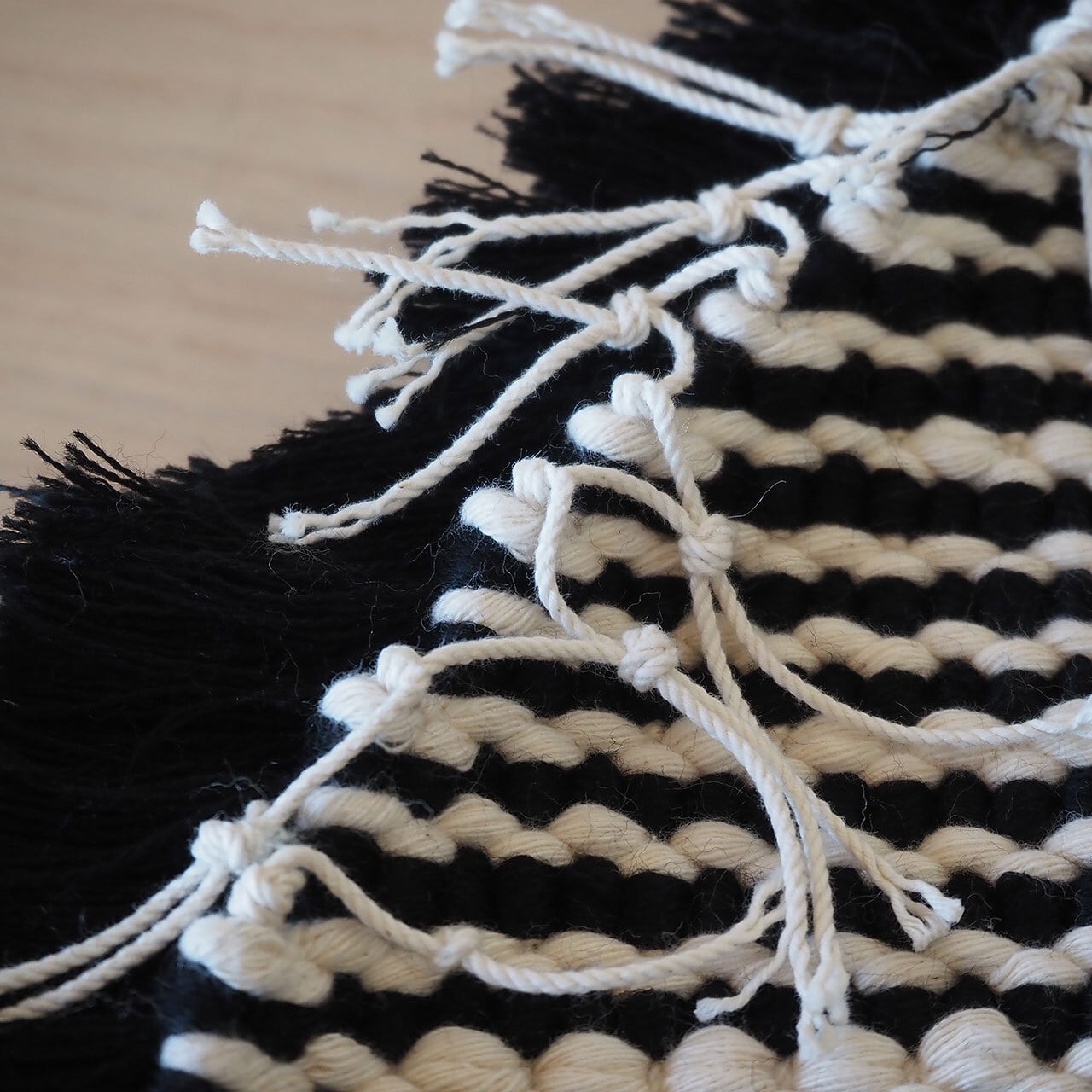 「工房コトリと」さわみささんの作るノッティングはすべてオリジナルデザインで、シンプルで心和む色柄が暮らしにスッとなじんでくれます。
