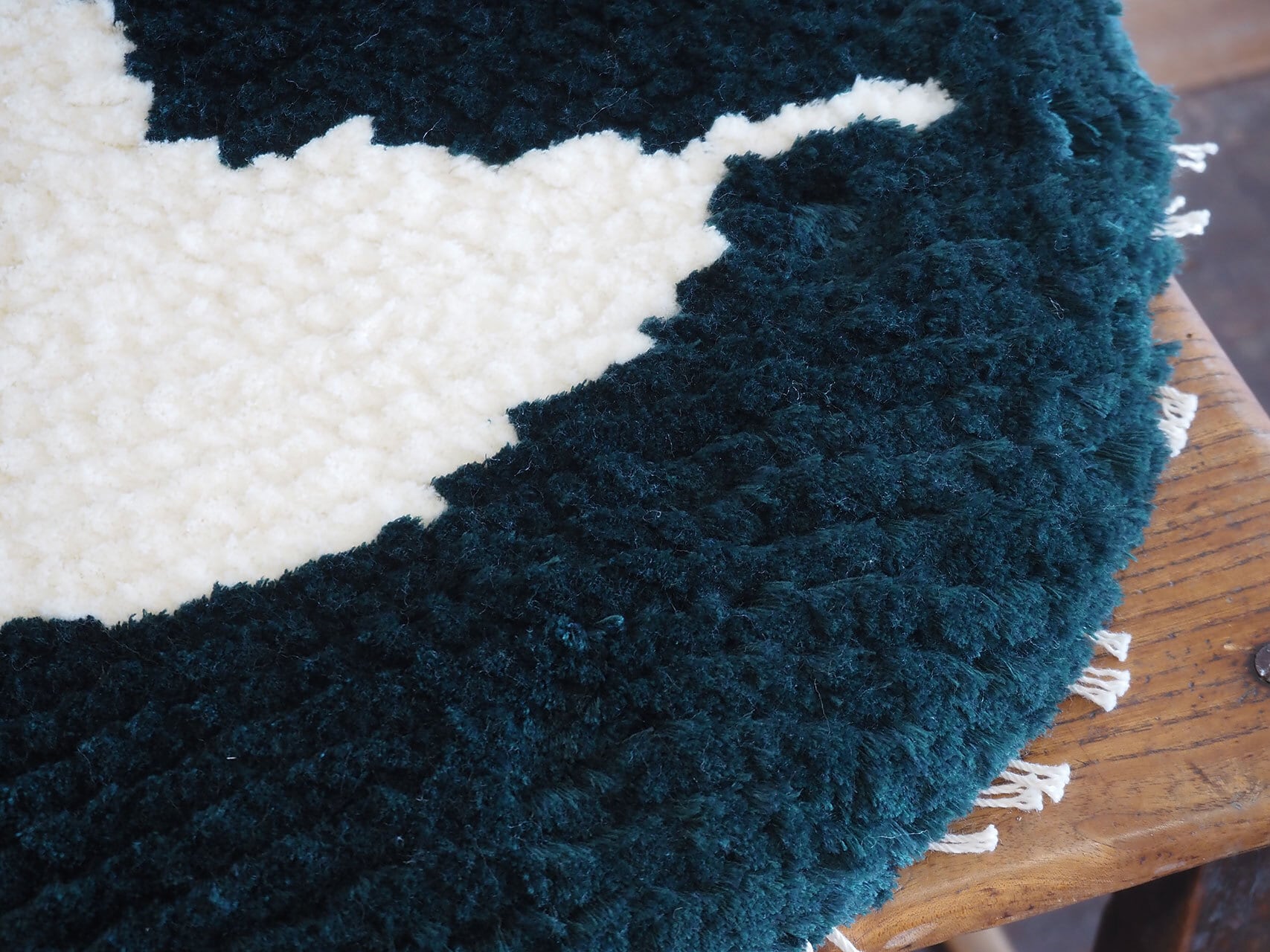 ふかふかと座り心地が良い上、インテリアとして目にも楽しい椅子敷き、ノッティング。