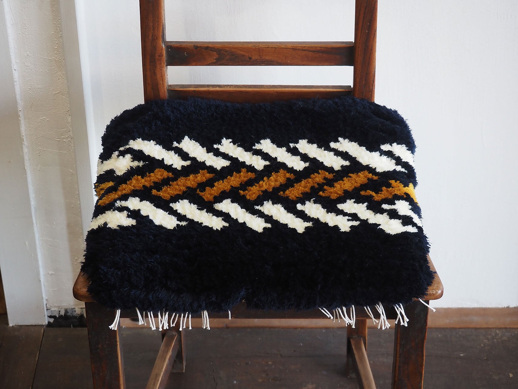 ふかふかと座り心地が良い上、インテリアとして目にも楽しい椅子敷き、ノッティング。