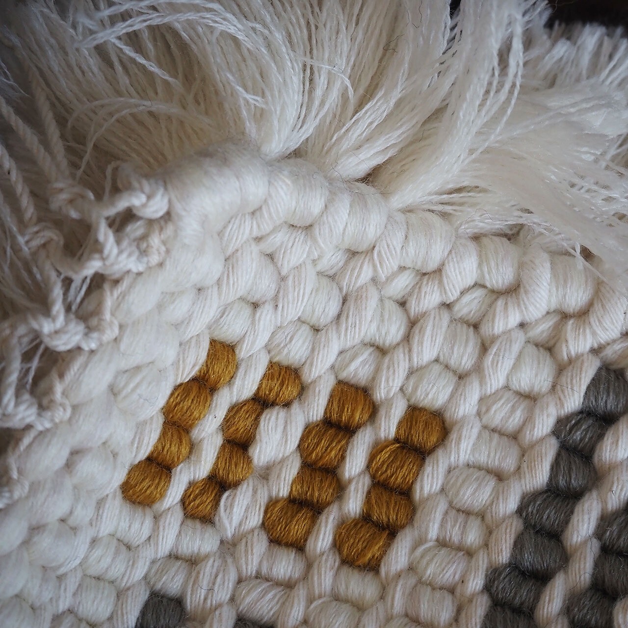 「工房コトリと」さわみささんの作るノッティングはすべてオリジナルデザインで、シンプルで心和む色柄が暮らしにスッとなじんでくれます。