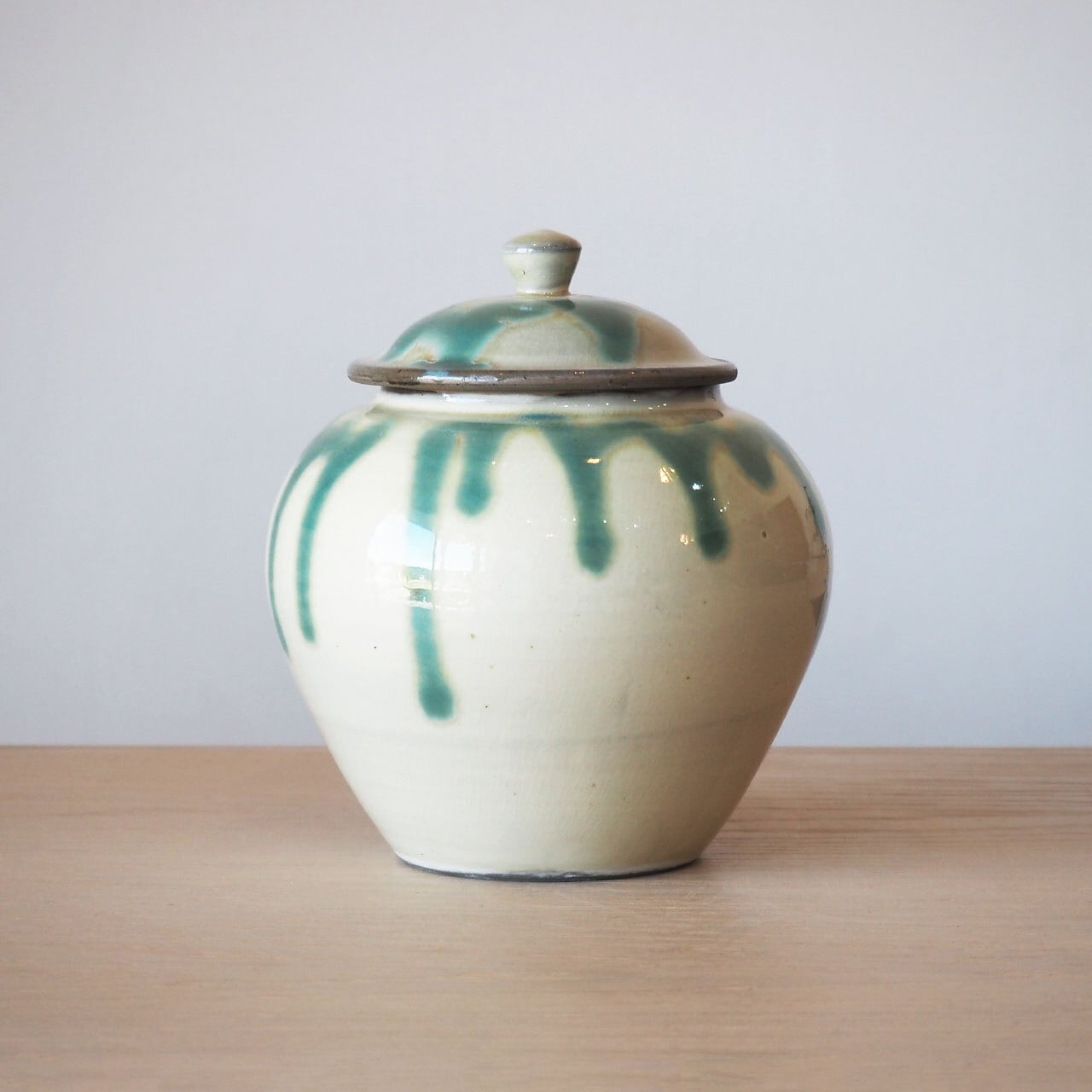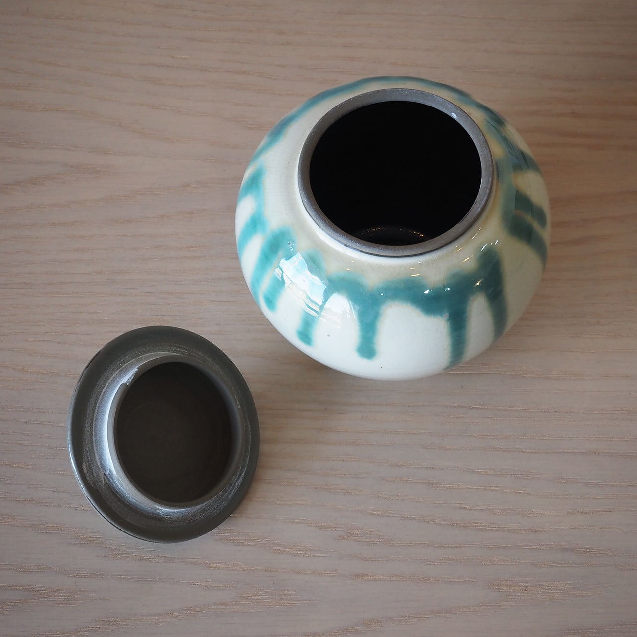 小鹿田焼 坂本浩二窯 5合壺(白/青流し)