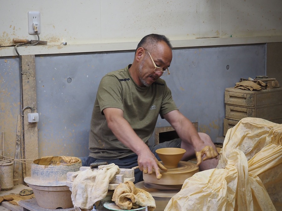今なお土を砕くのは唐臼、成形は蹴ろくろ、焼成は登り窯という元来の製法を守っており、国の重要無形文化財に指定されています。