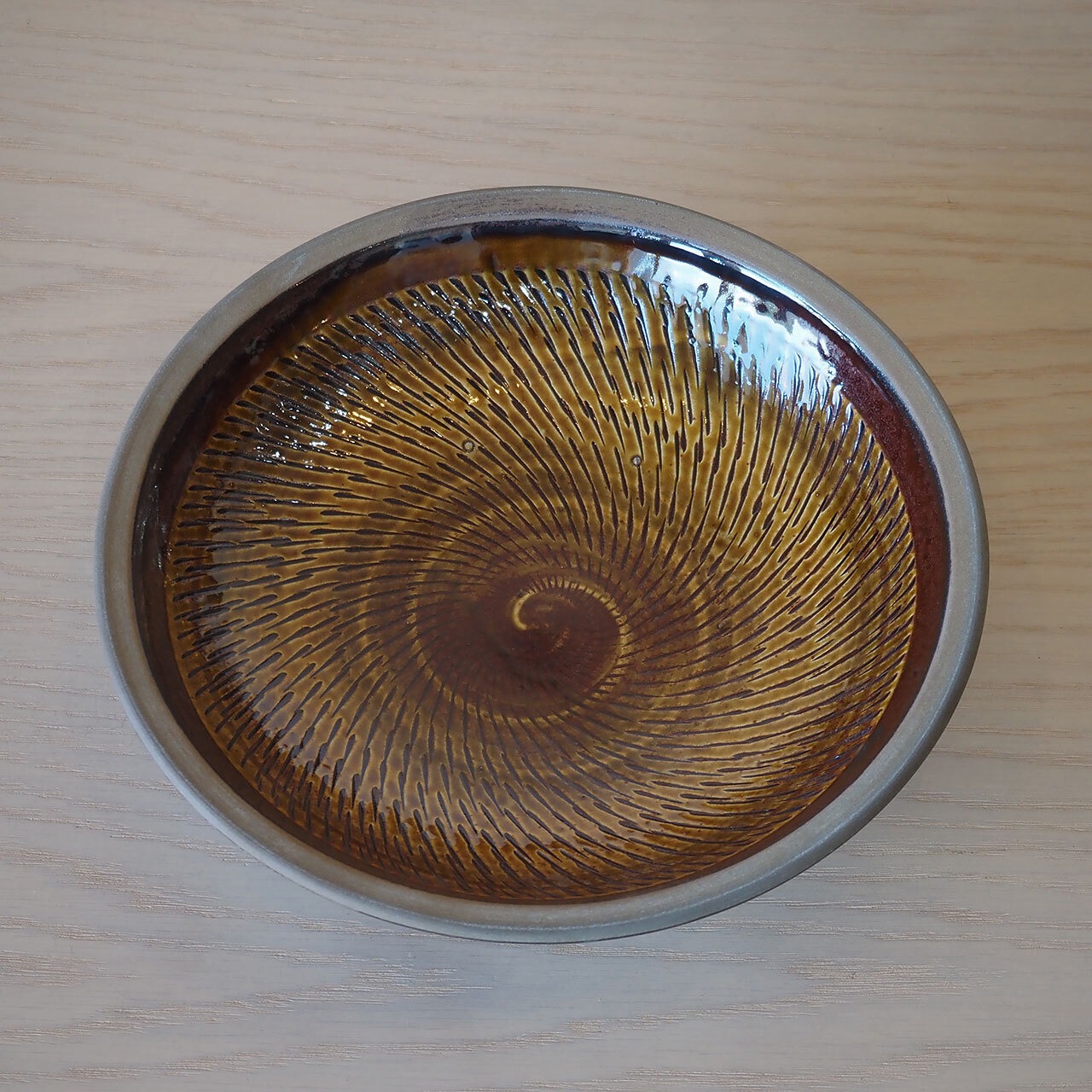 小鹿田焼 坂本浩二窯 伏せ合わせ8寸皿(飴/飛び鉋)