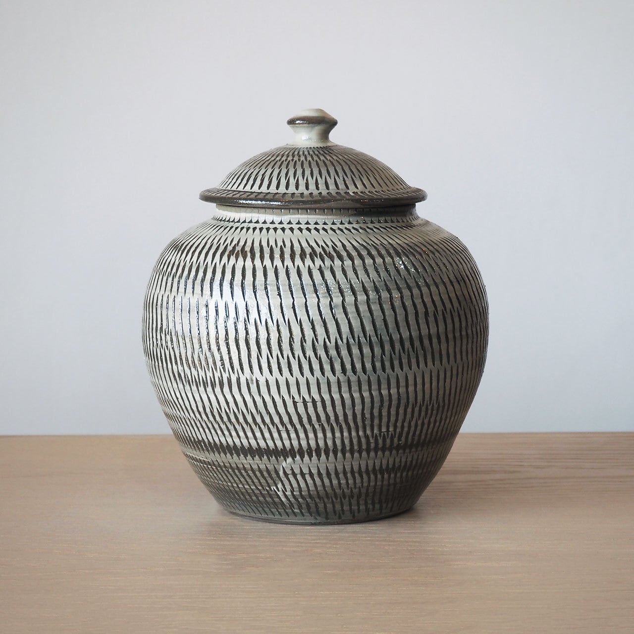 小鹿田焼 坂本浩二窯 1.5升壺(白/飛び鉋)
