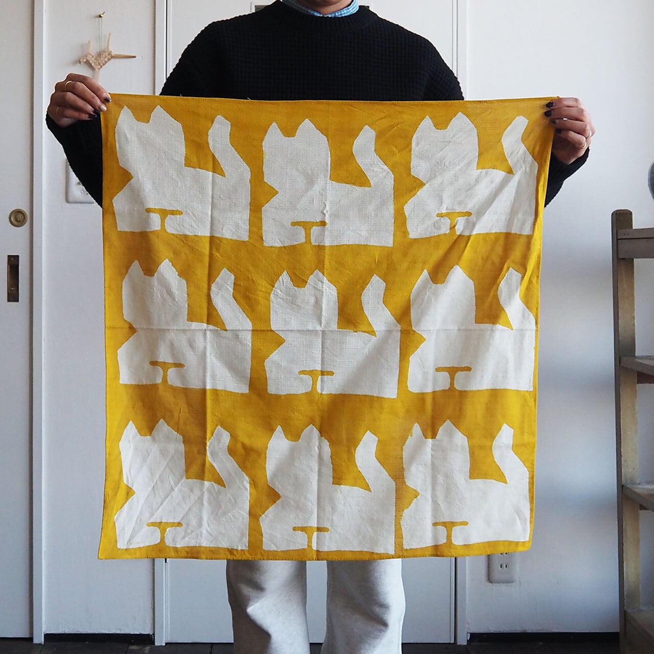 その型染ならではの風合いはもちろんですが、何とも言えないゆるさとユニークさのある、「染太郎」らしいデザインも魅力です。猫好きにはたまらない。