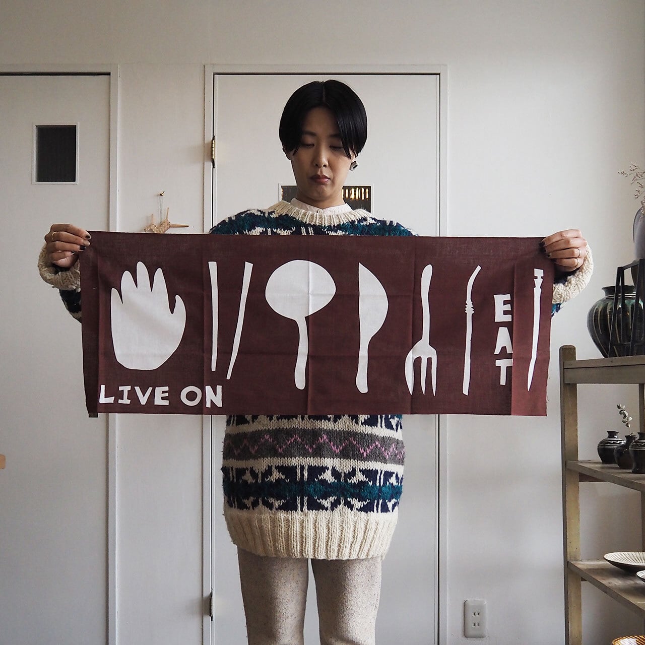 独特のゆるさやユニークさについ目が向きますが、芹沢銈介や柚木沙弥郎といった先人たちへのリスペクトもある山岸さん。
