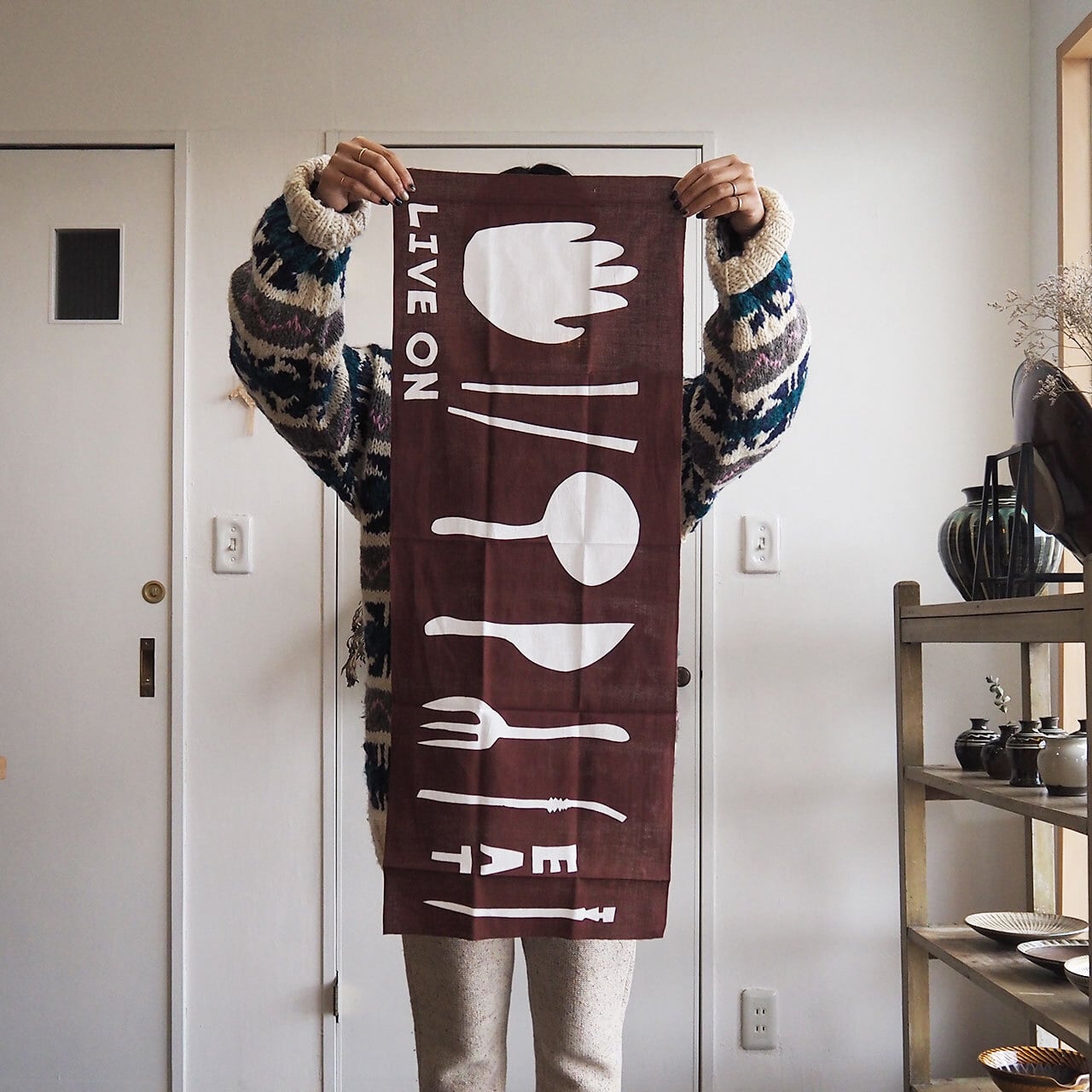 独特のユルさ、ユニークさのある、「染太郎」らしいデザインの手拭い。