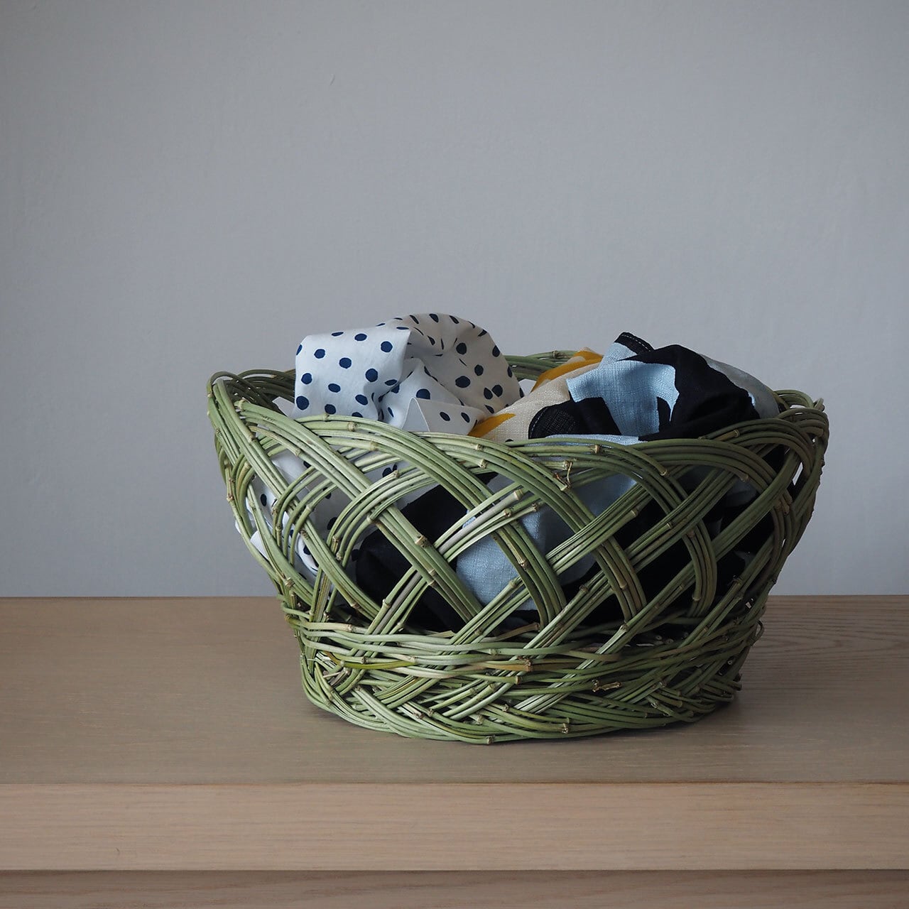 編み立ては美しい緑ですが、経年と共に色が渋く変わっていきます。