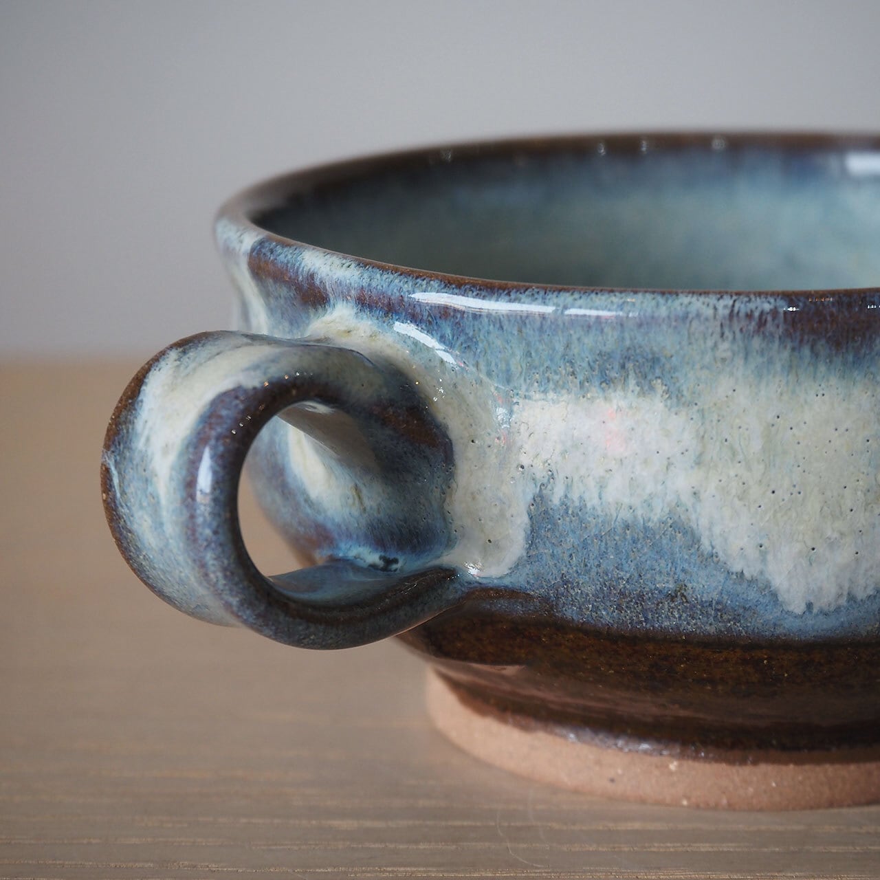 小代焼らしい奥行きのある良い色をした、ハンドル付きのスープ碗。