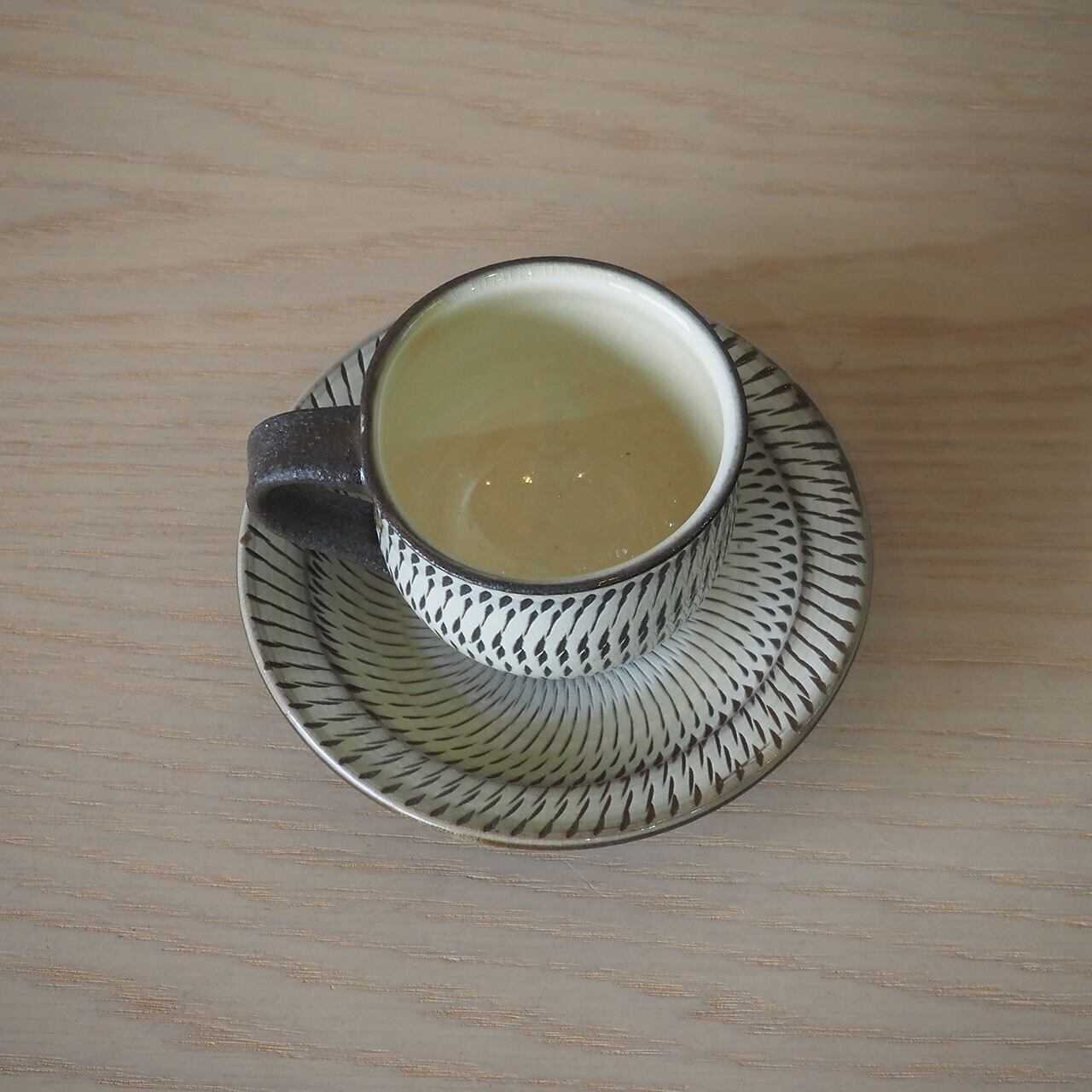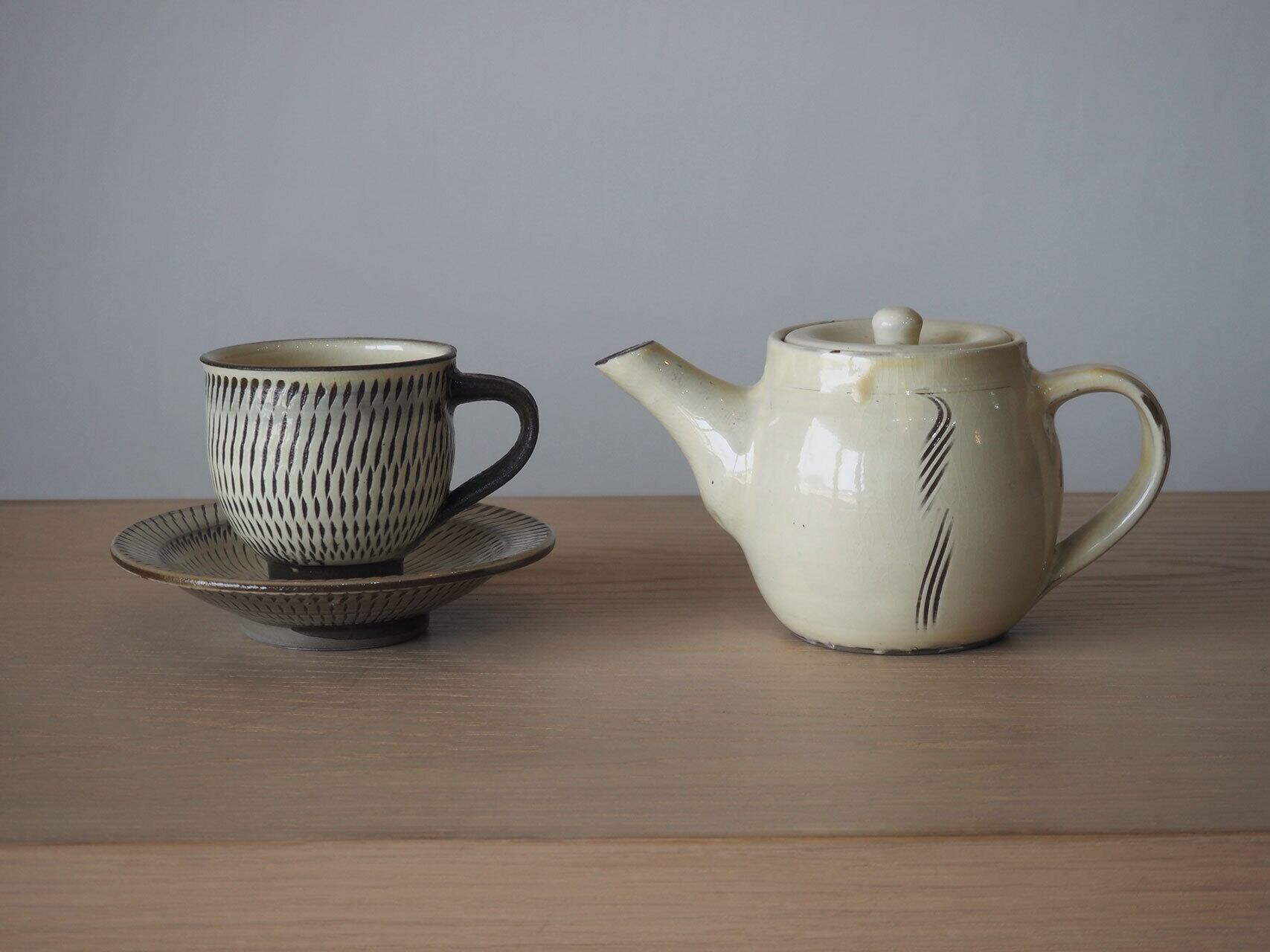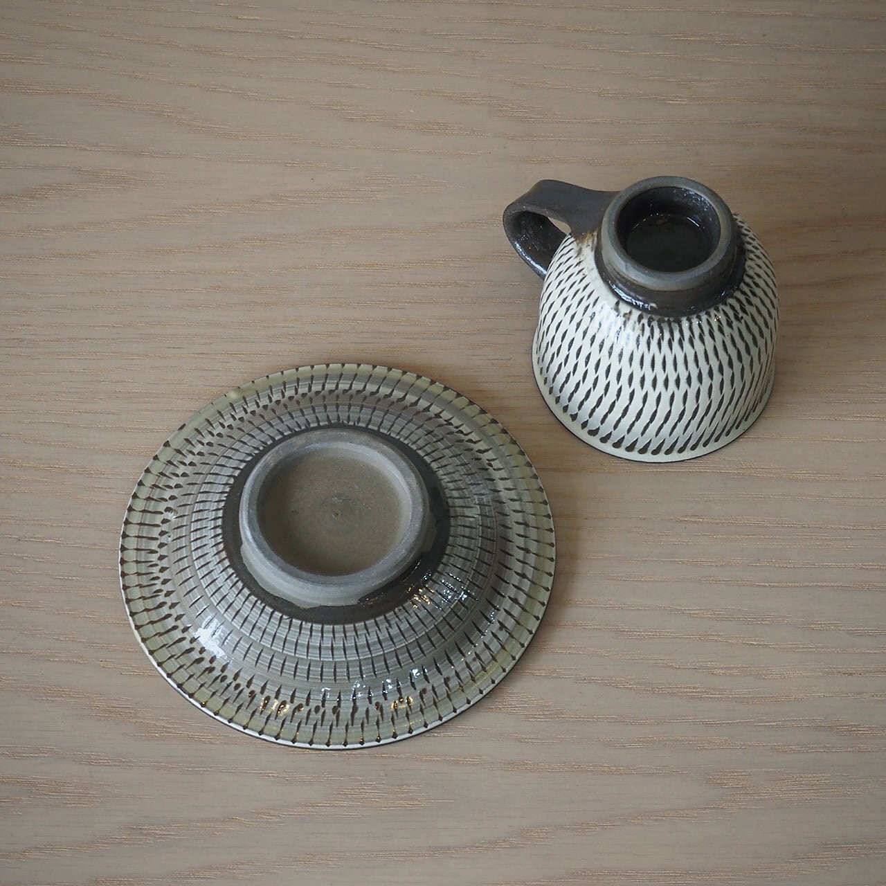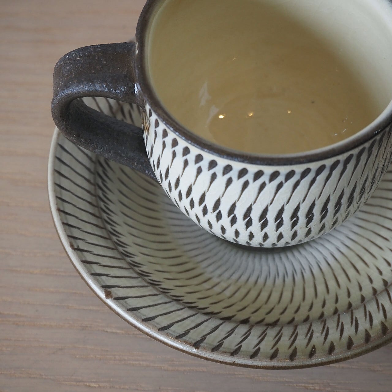 小鹿田焼らしい飛び鉋のカップ&ソーサー。