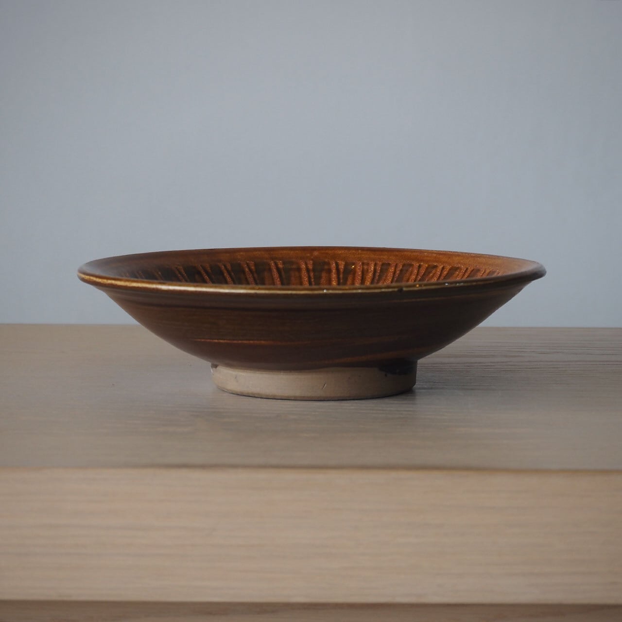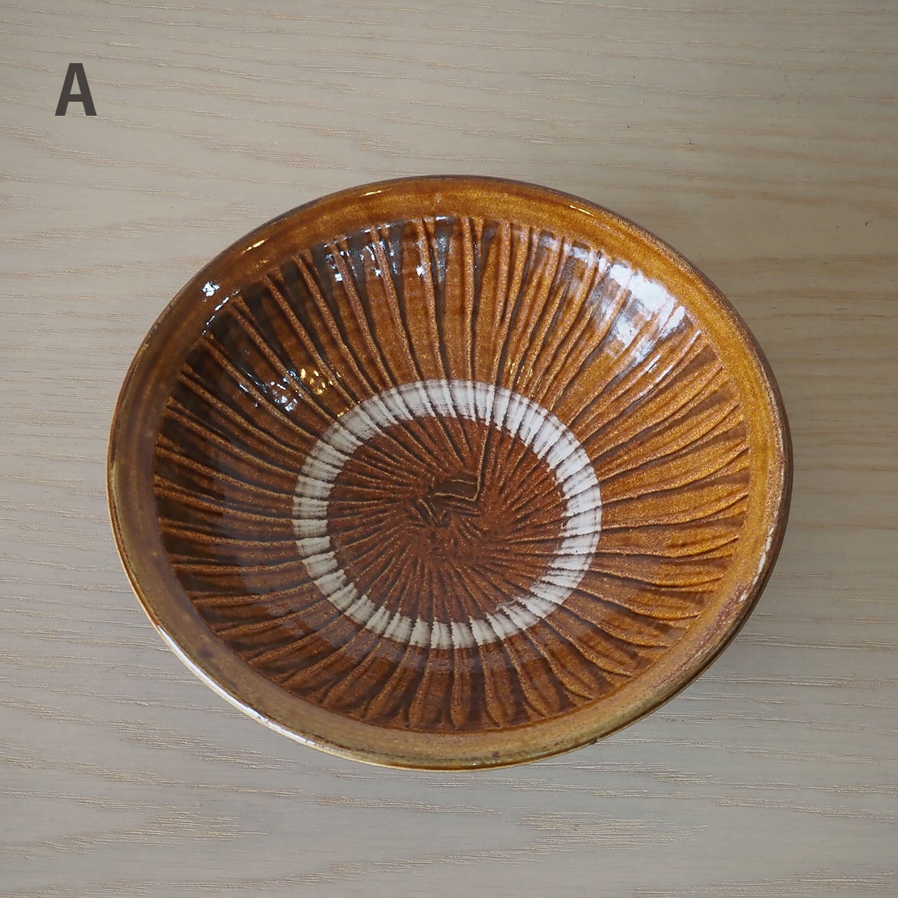 小鹿田焼 黒木昌伸窯 7寸深皿(飴/刷毛)
