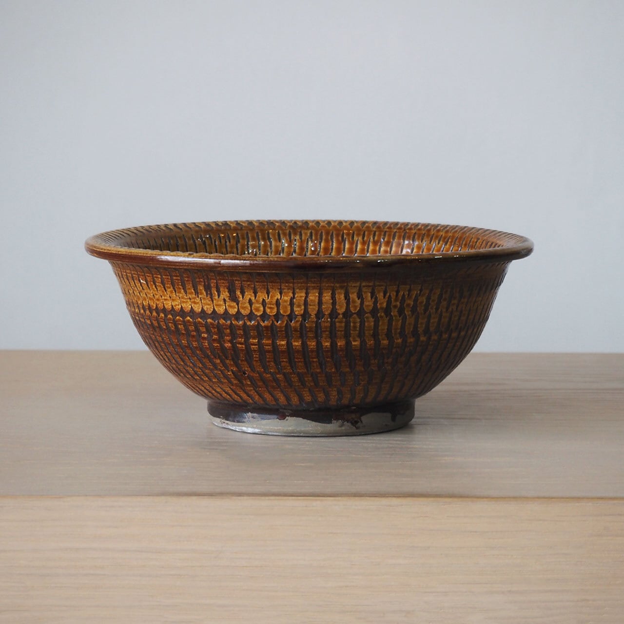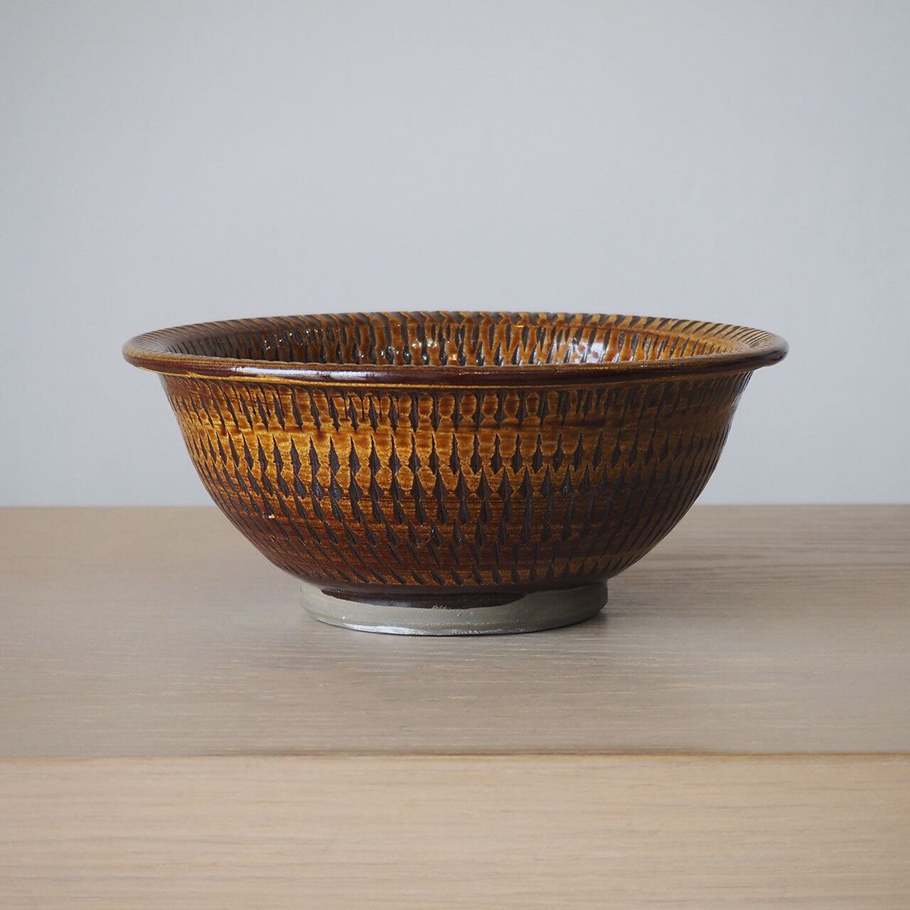 小鹿田焼 黒木昌伸窯 7寸丸鉢(飴/飛び鉋)