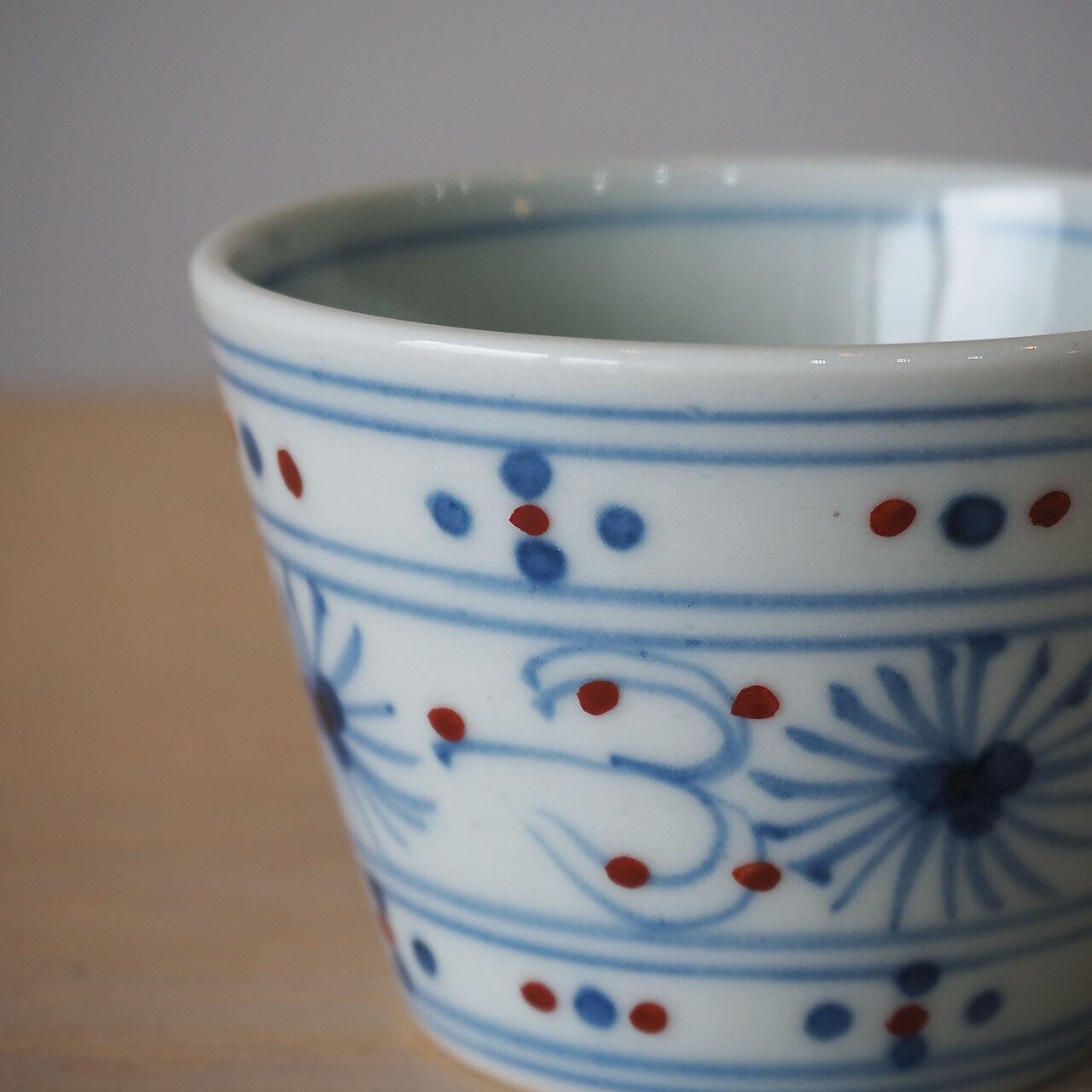 初期伊万里を思わせる素朴な絵付けと形にこだわる大日窯。繰り返しの仕事が生んだその見事な筆捌きは正に職人技です。白さ、華やかさを特徴とする一般的な有田焼とは一線を画します。