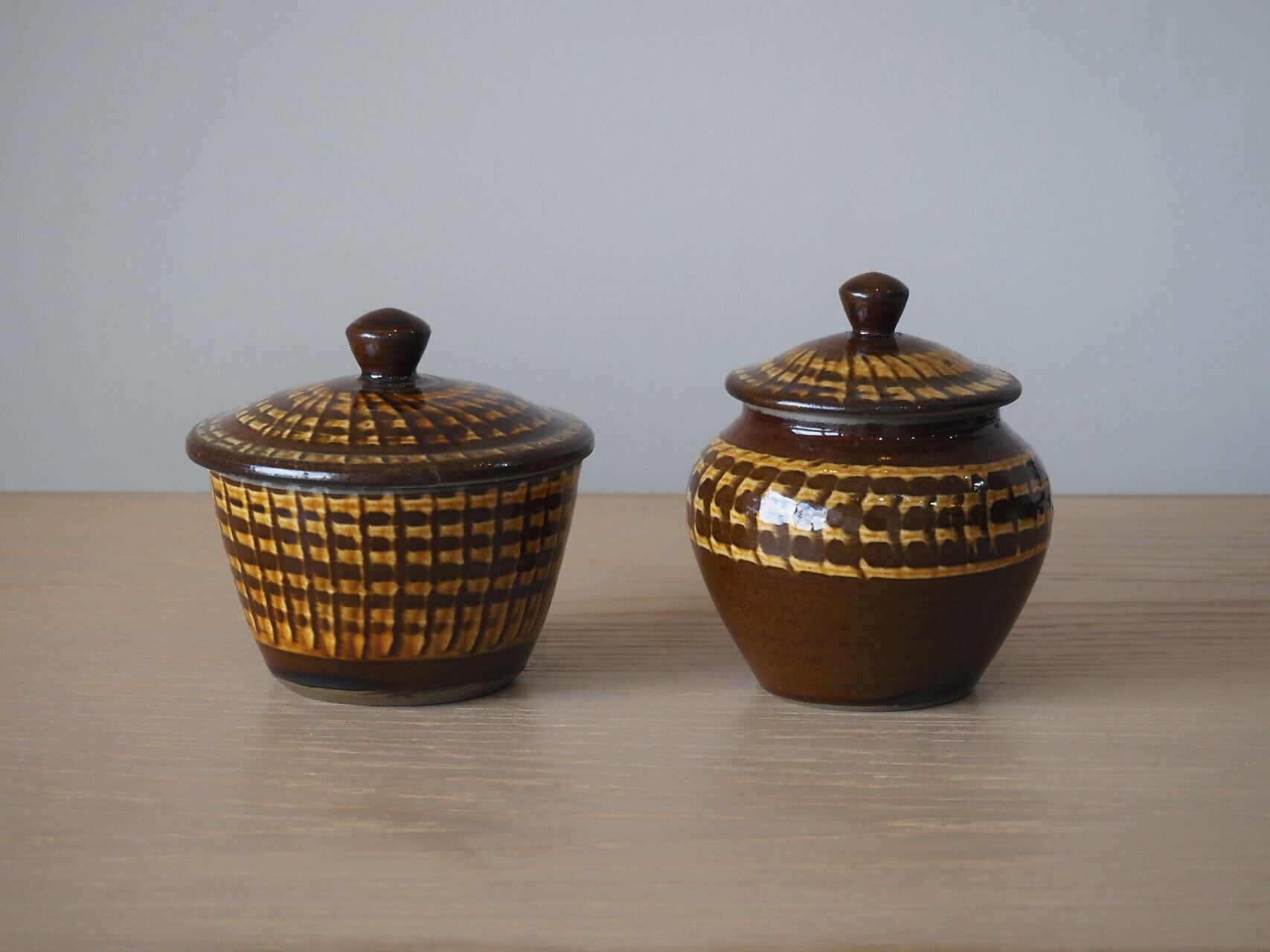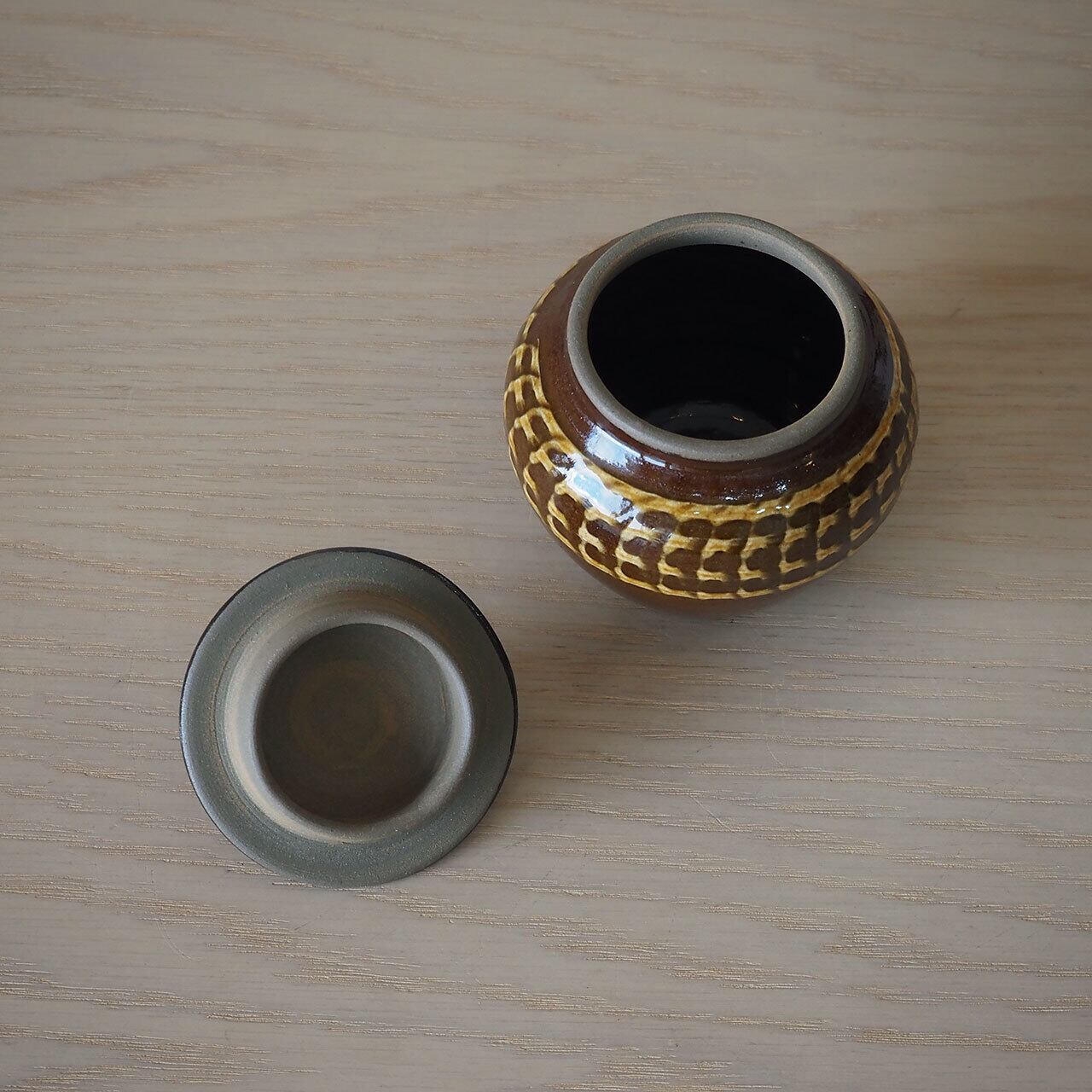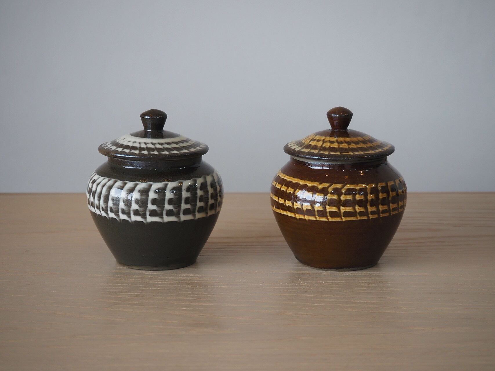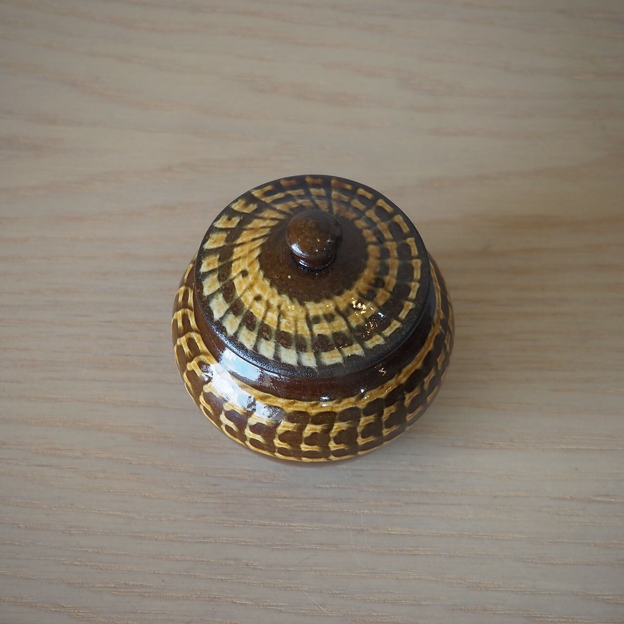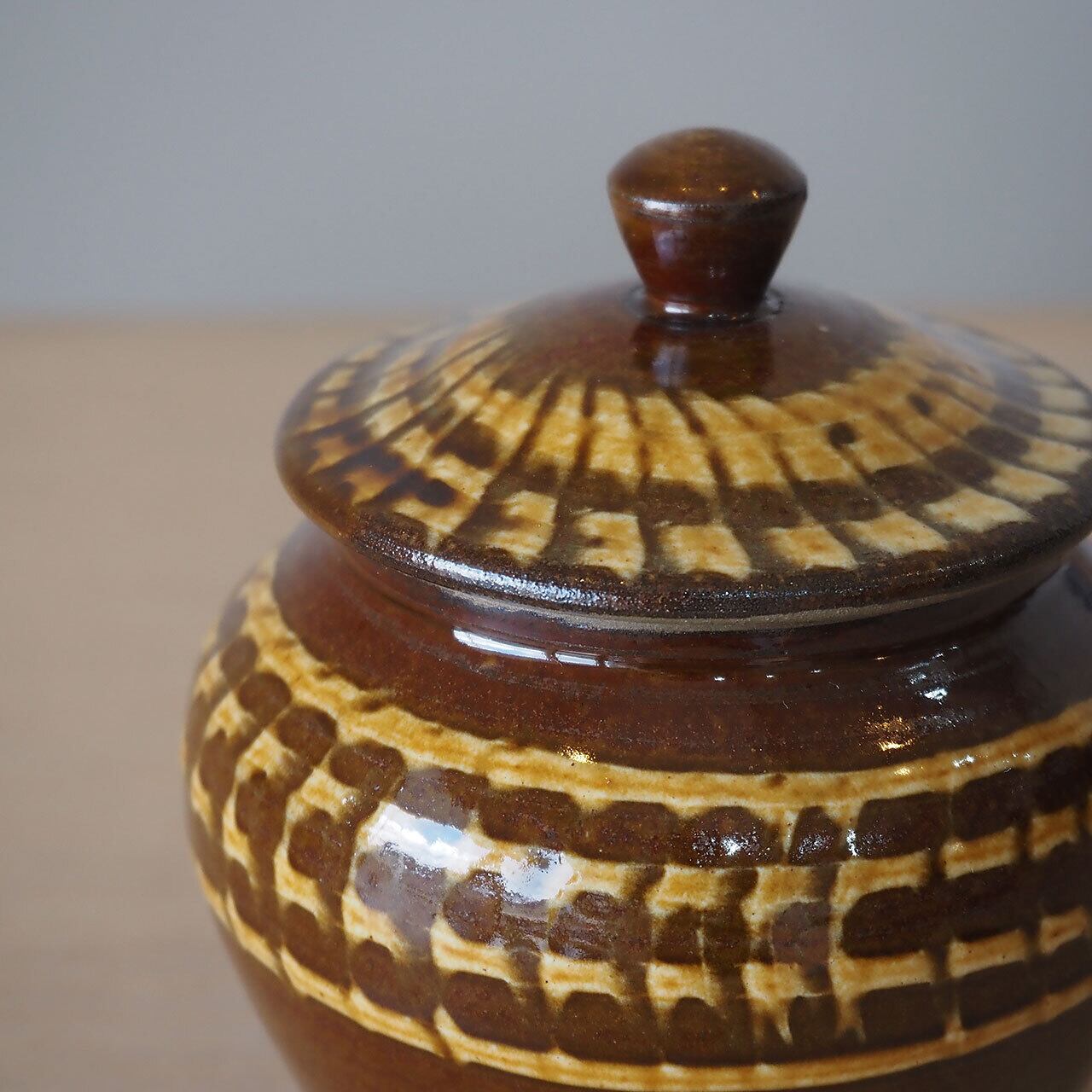 小鹿田焼 坂本浩二窯 1合壺(飴/いっちんに刷毛)