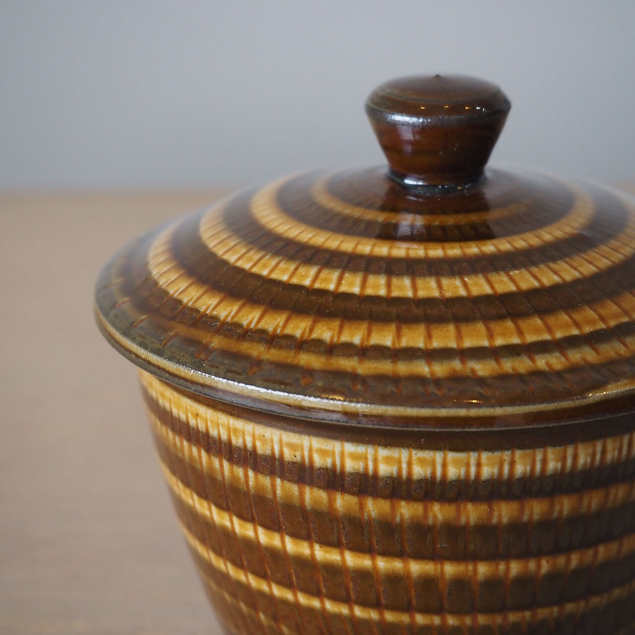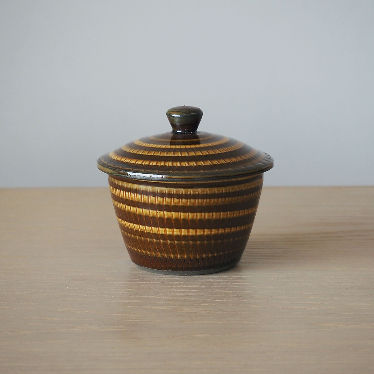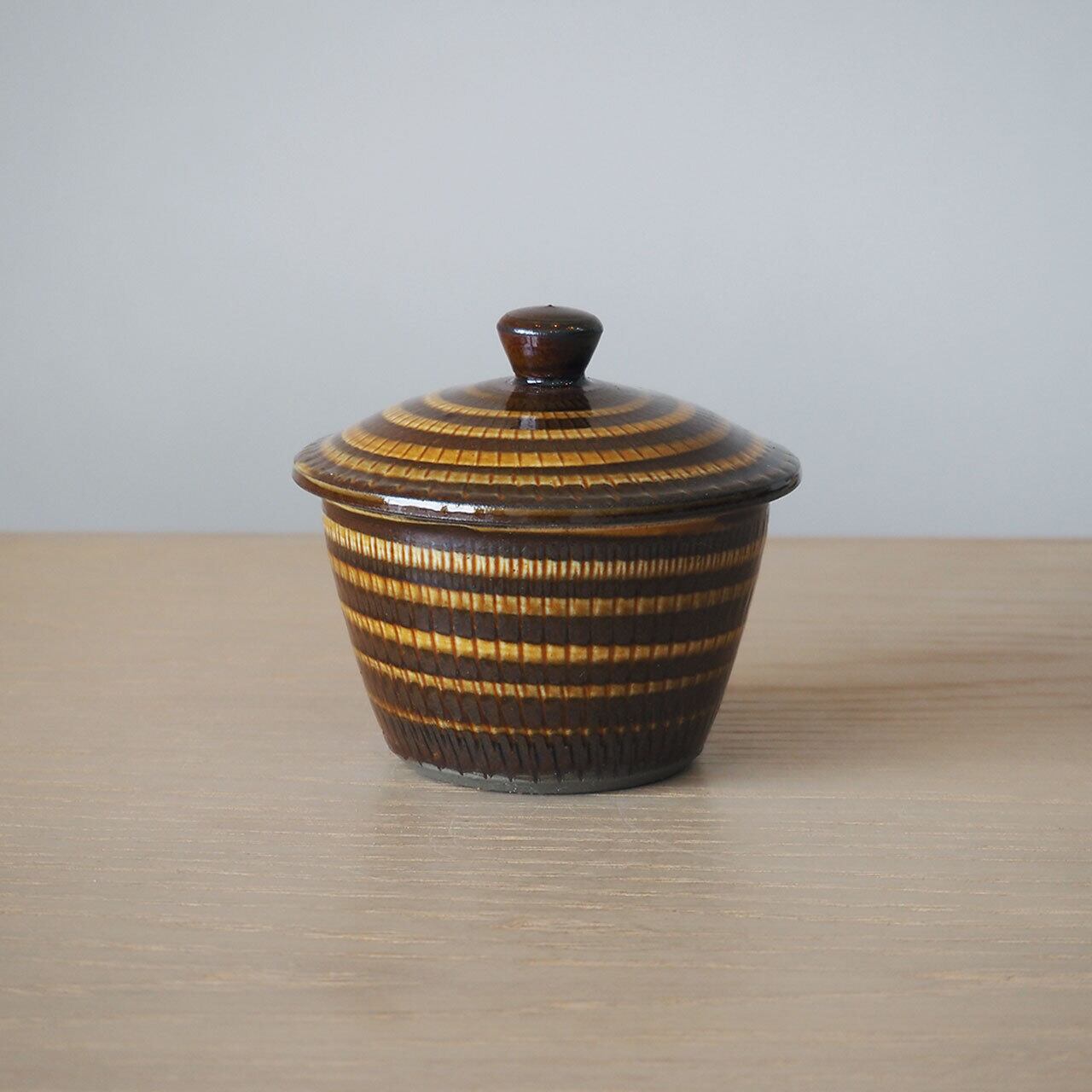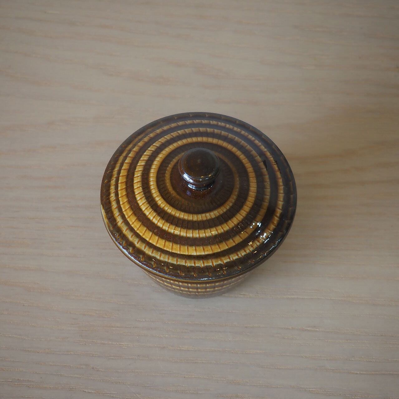 小鹿田焼 坂本浩二窯 3寸広口壺(飴/飛び鉋にいっちん)