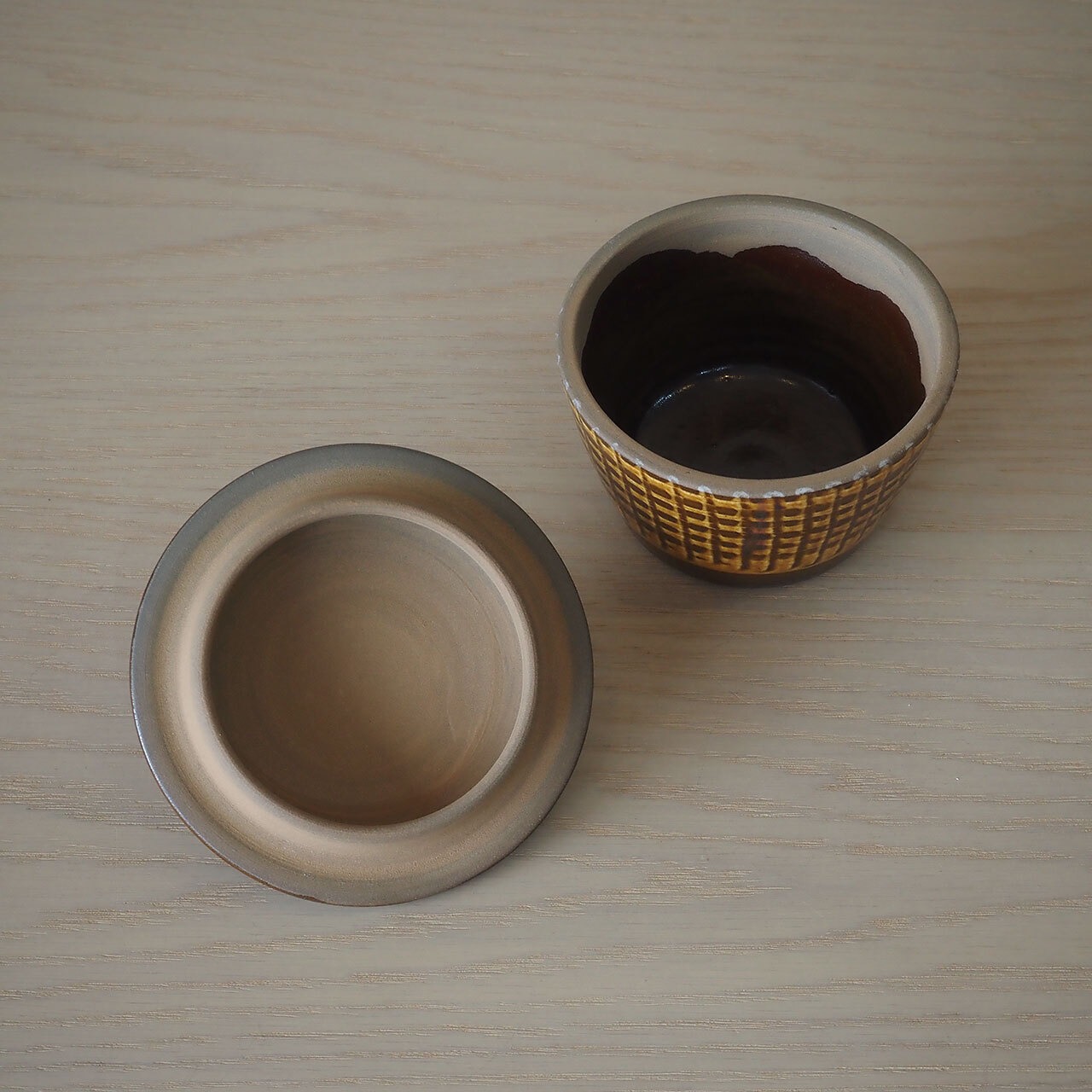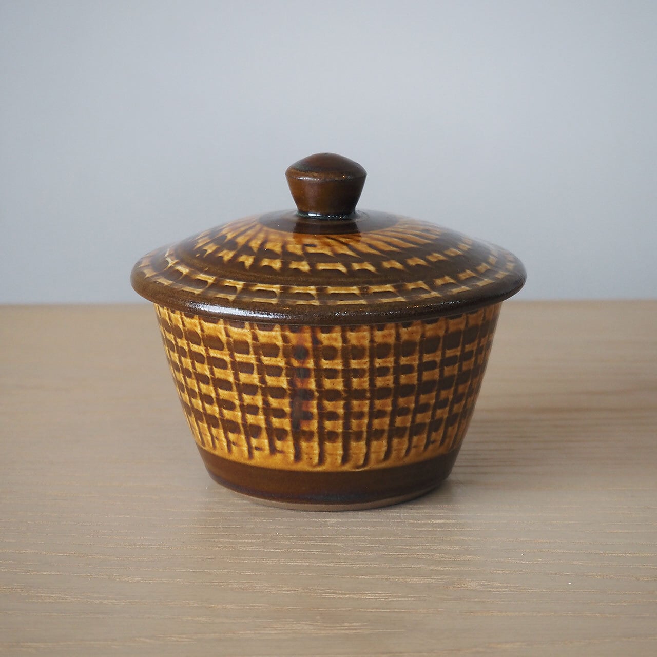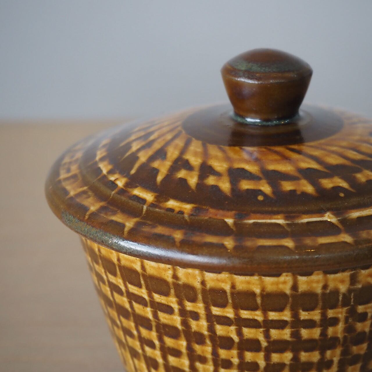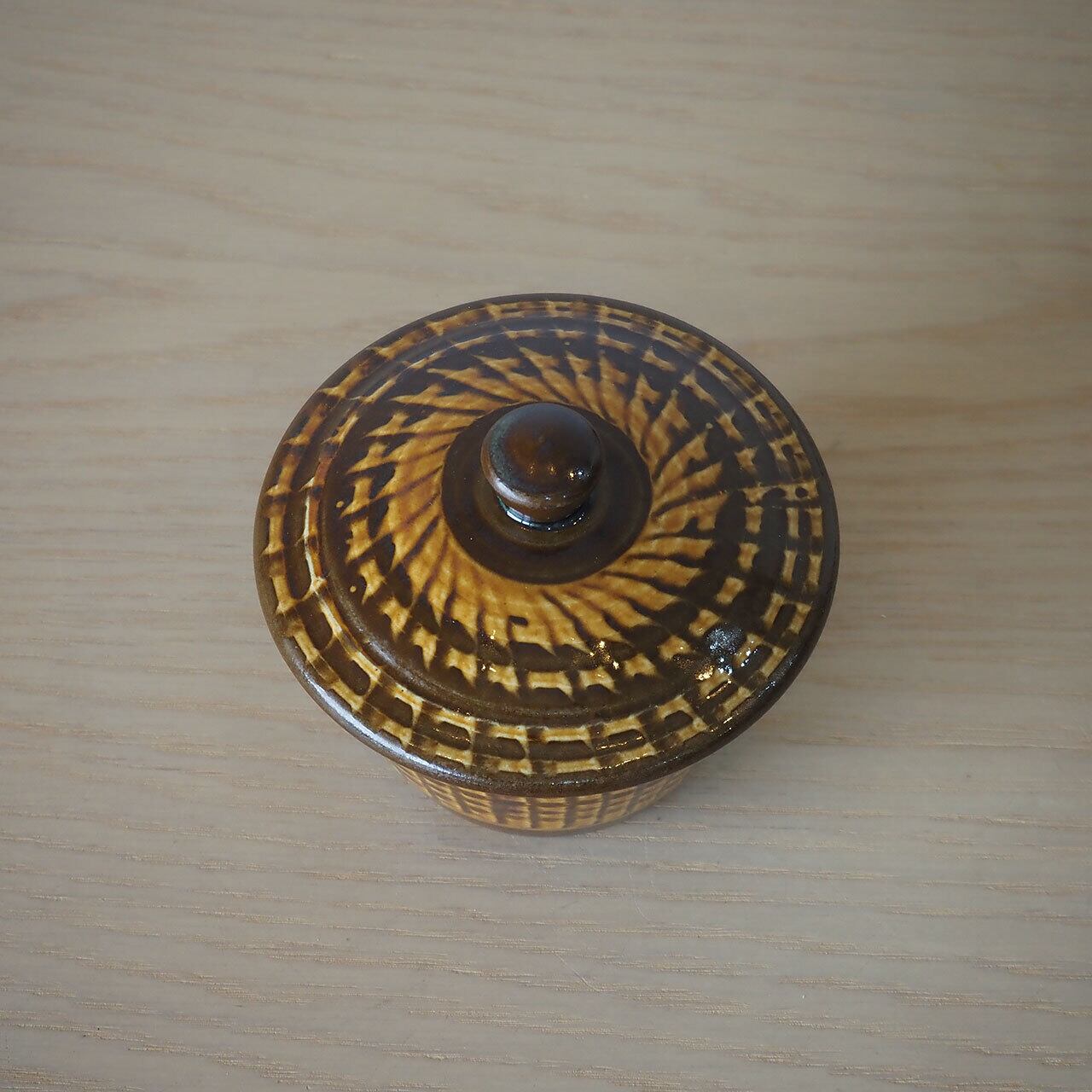 小鹿田焼 坂本浩二窯 3.5寸広口壺(飴/いっちんに刷毛)
