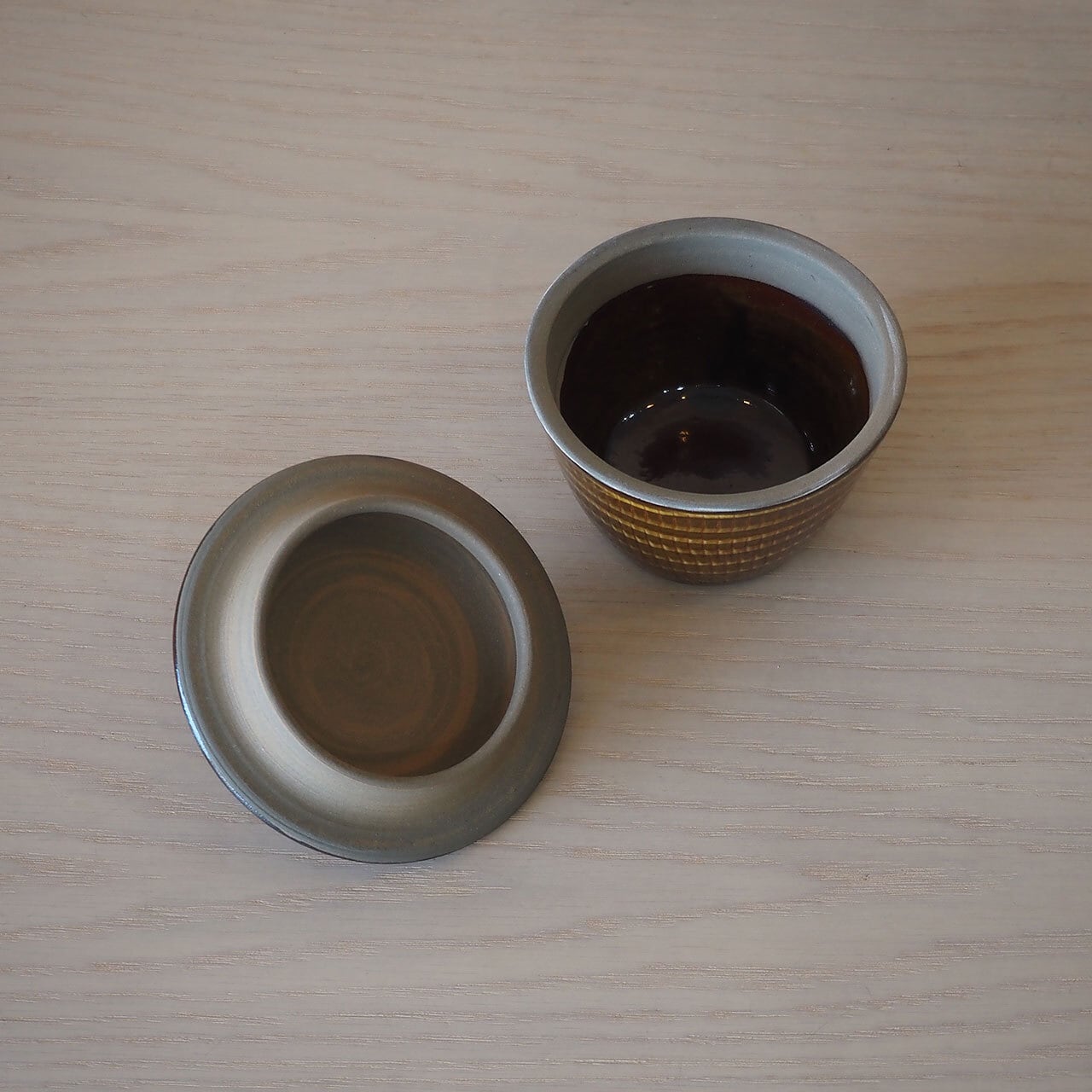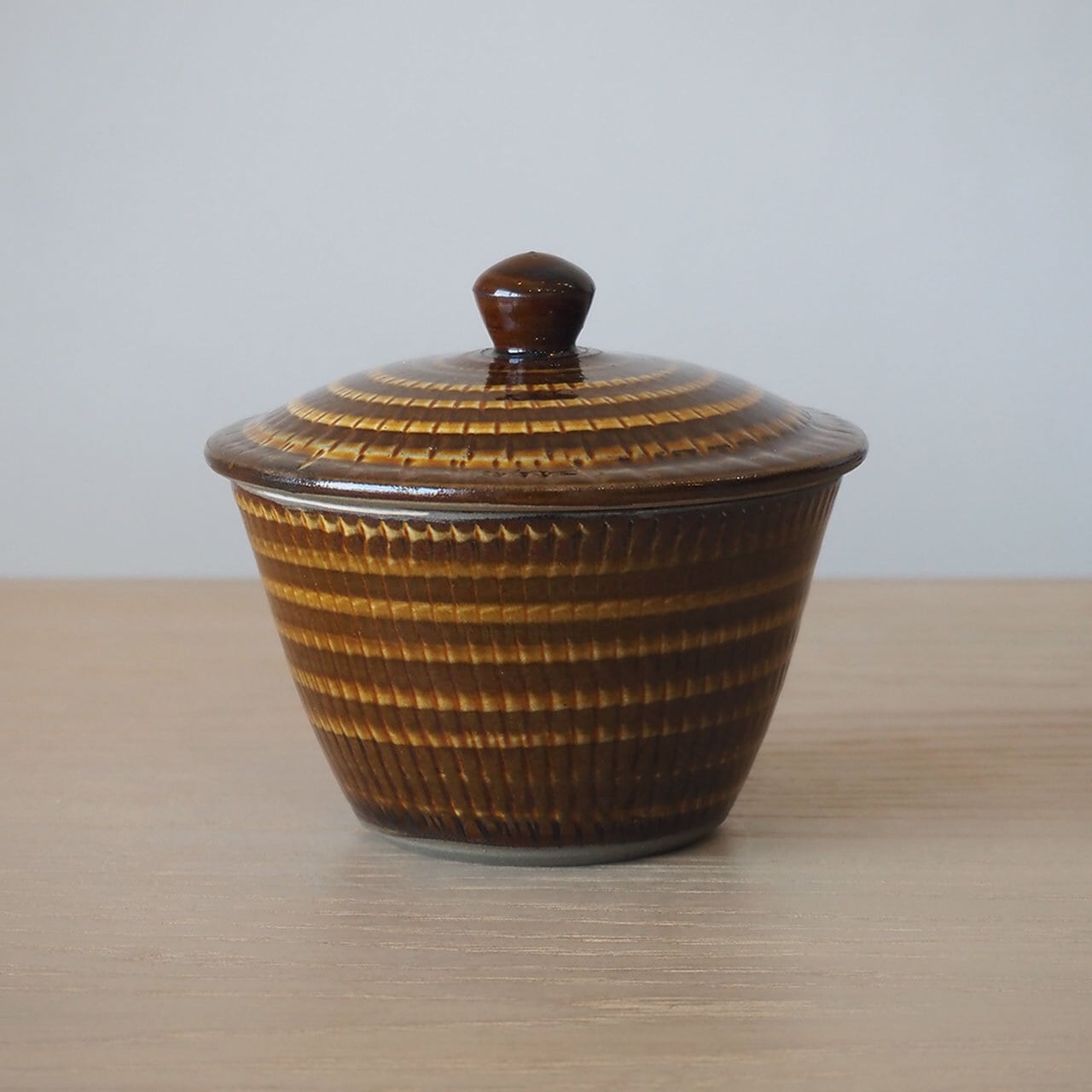 小鹿田焼 坂本浩二窯 3.5寸広口壺(飴)※難あり