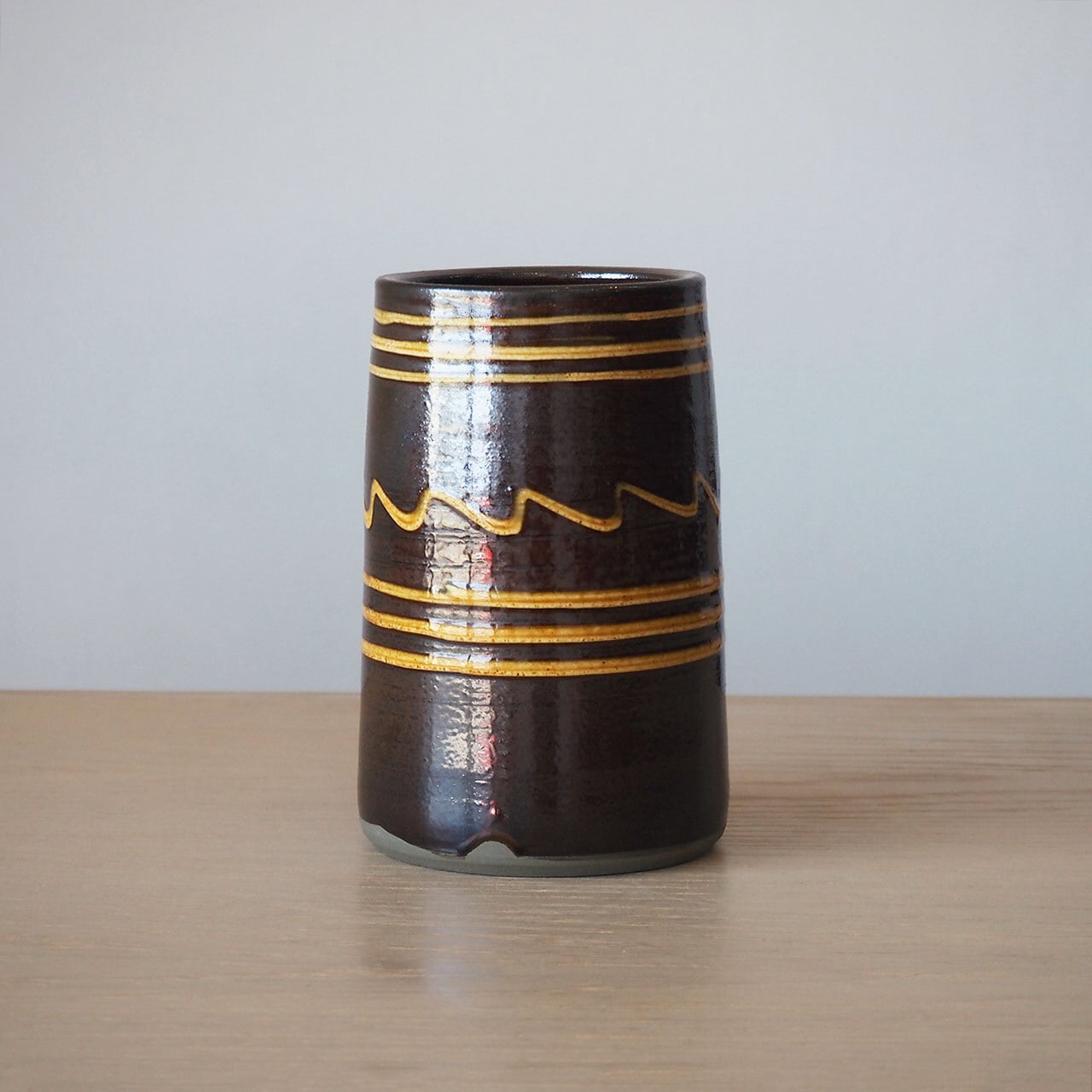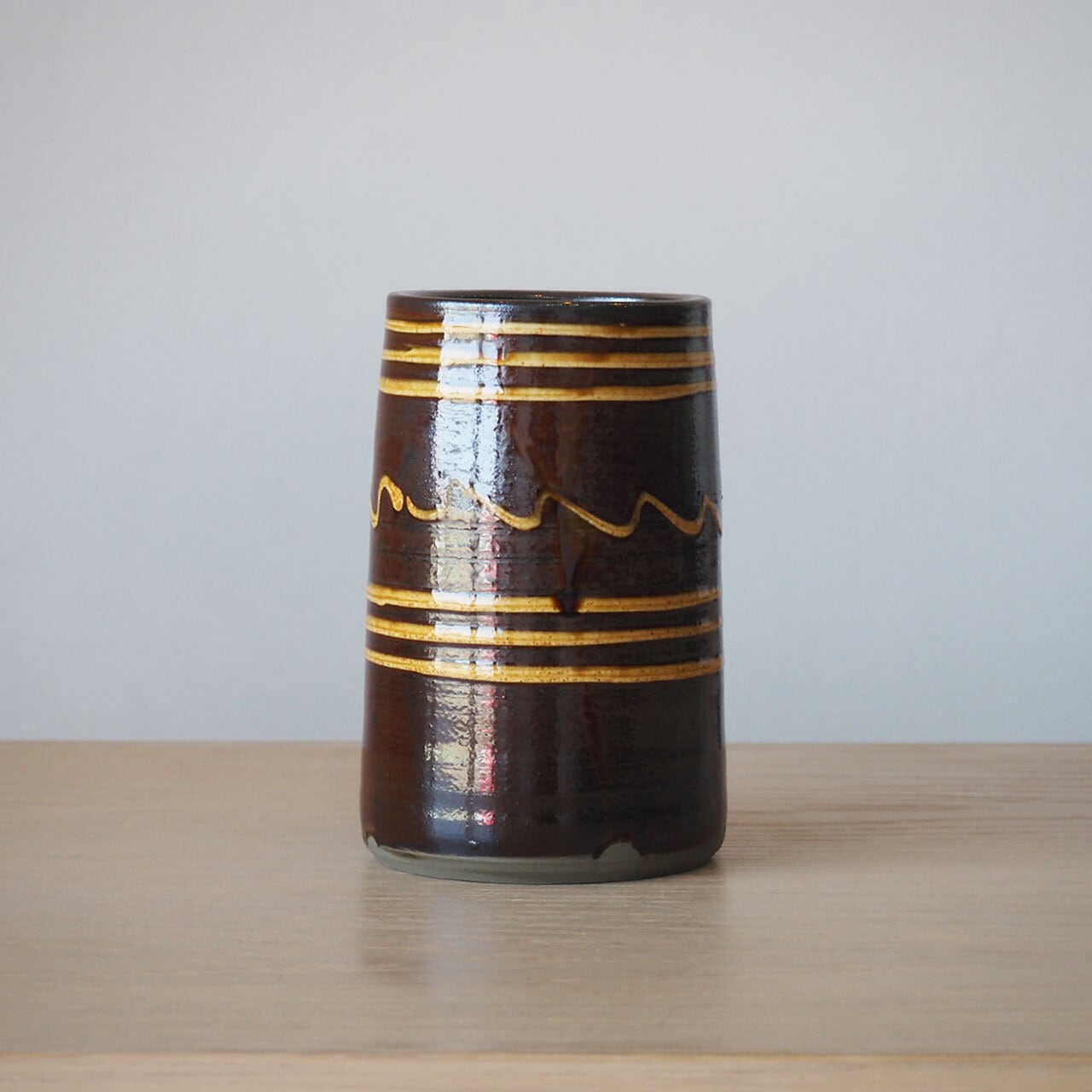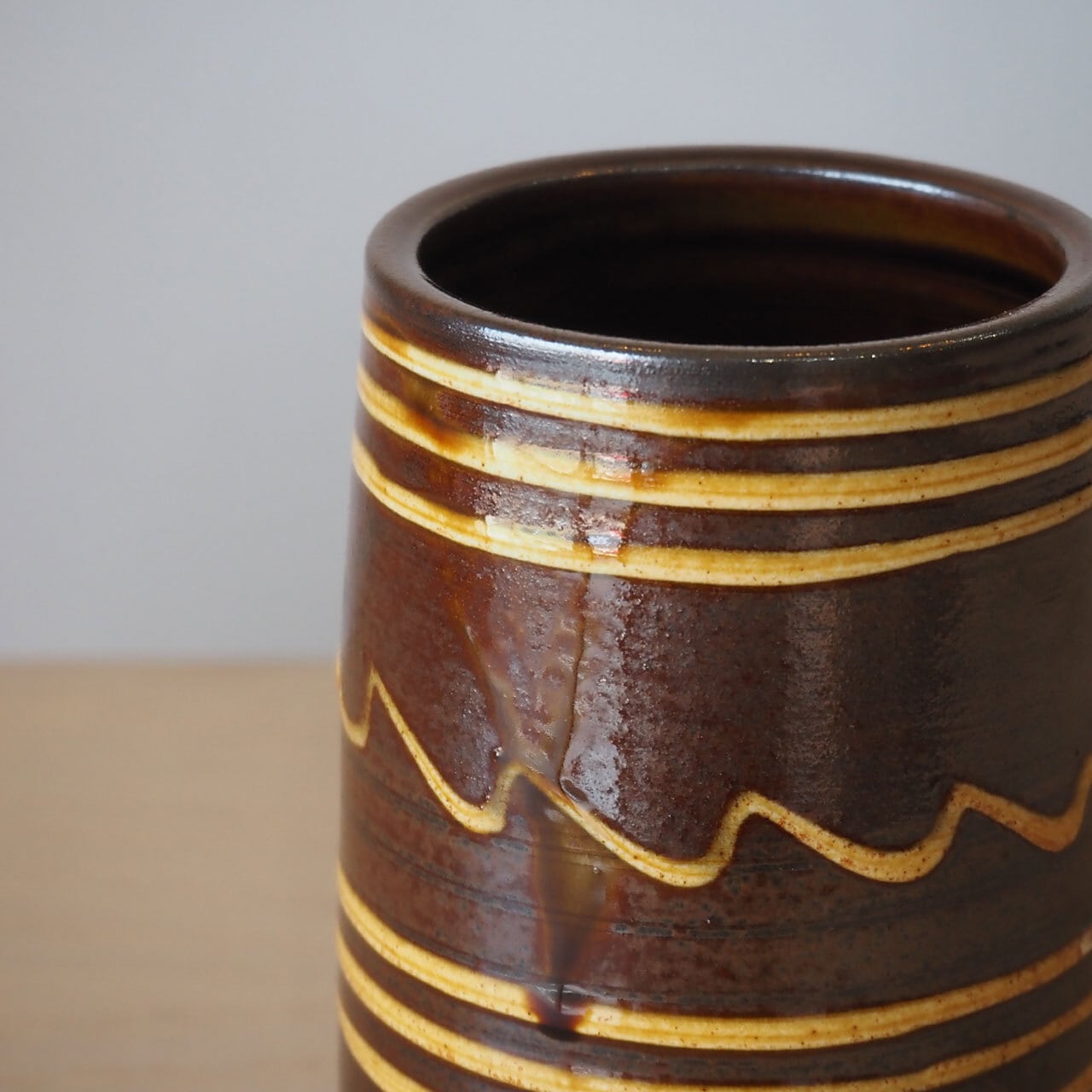 小鹿田焼 坂本浩二窯 5寸筒花瓶(飴/ポン描き)