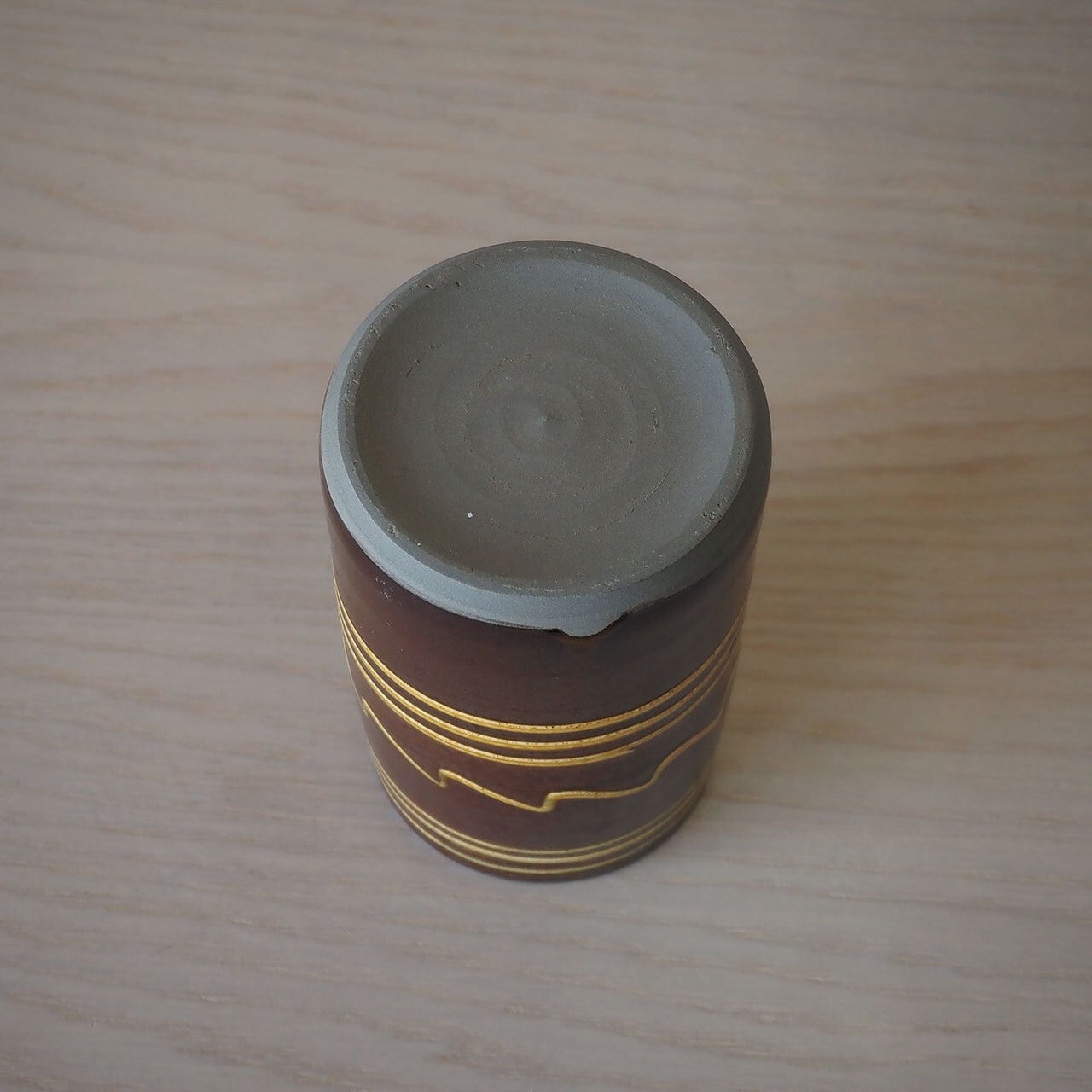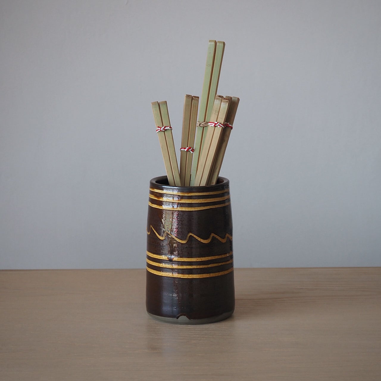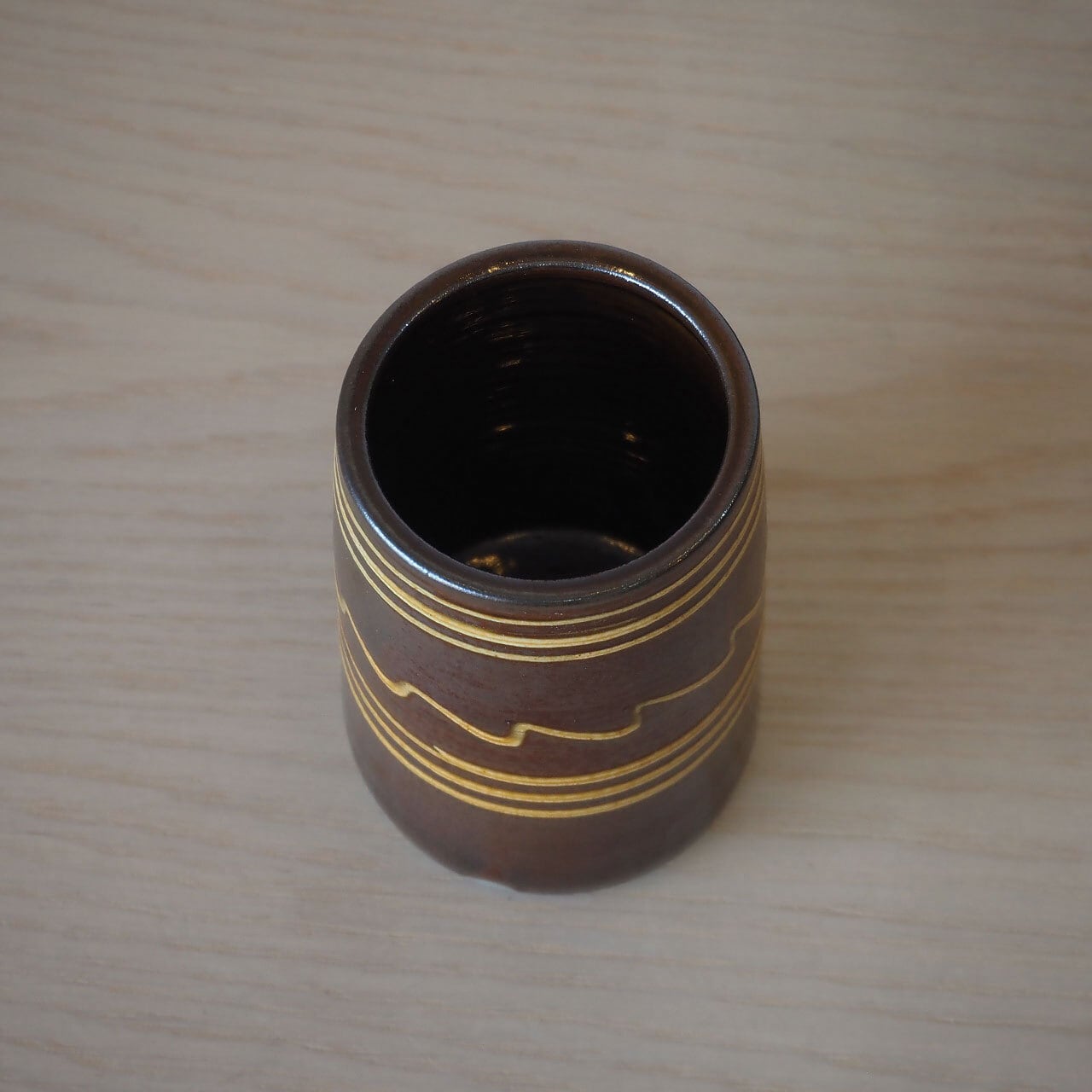 小鹿田焼 坂本浩二窯 5寸筒花瓶(飴/ポン描き)