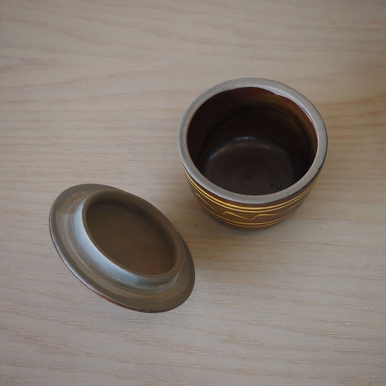 古い出西窯の蓋物を写してもらったので、蓋の形が定番と少し違ってこれまた素敵です。