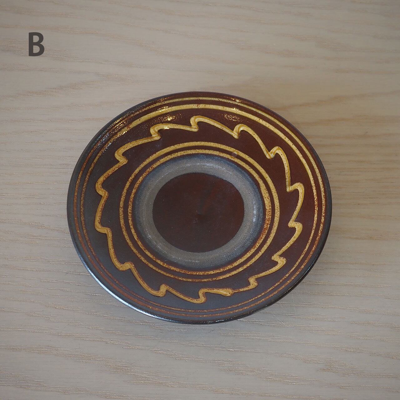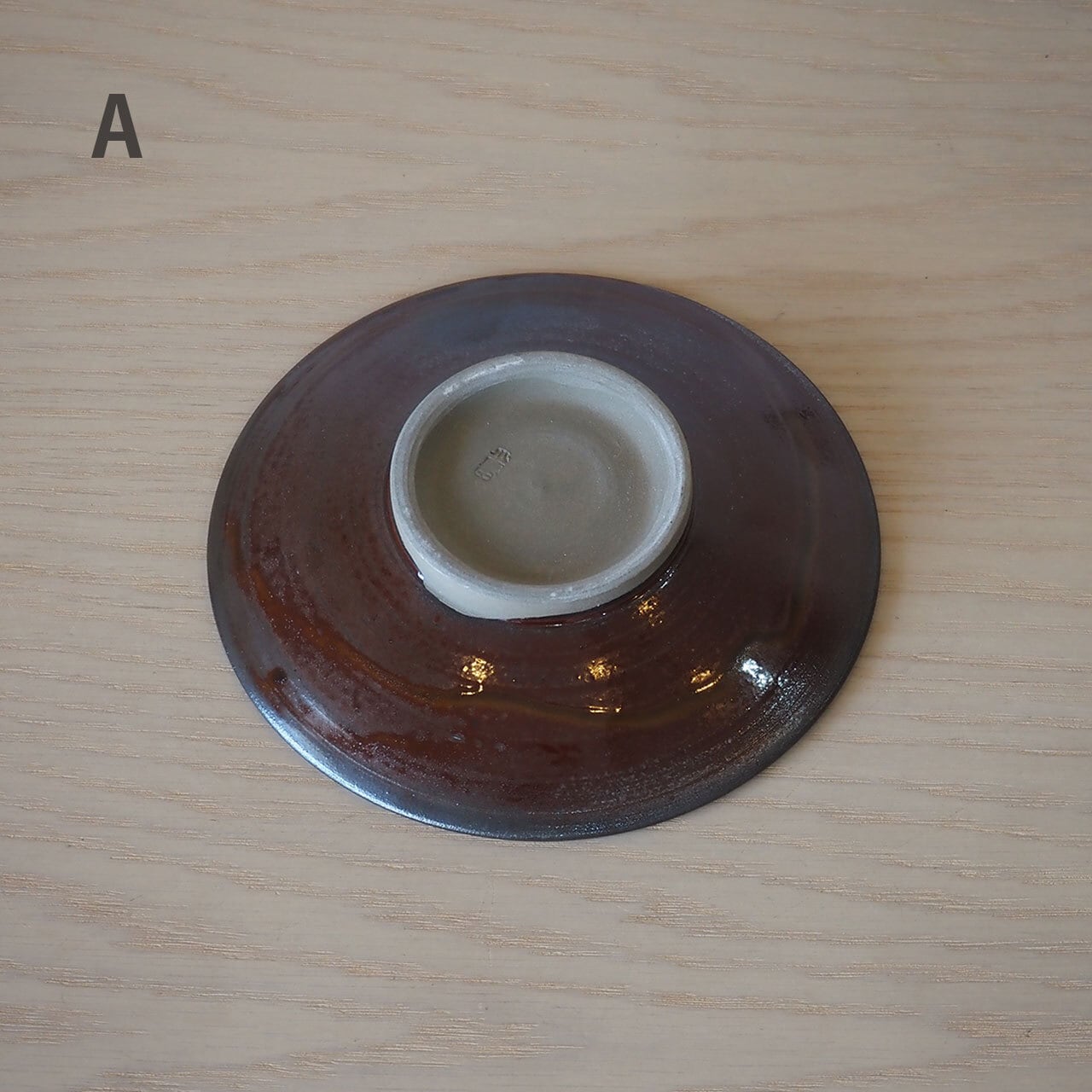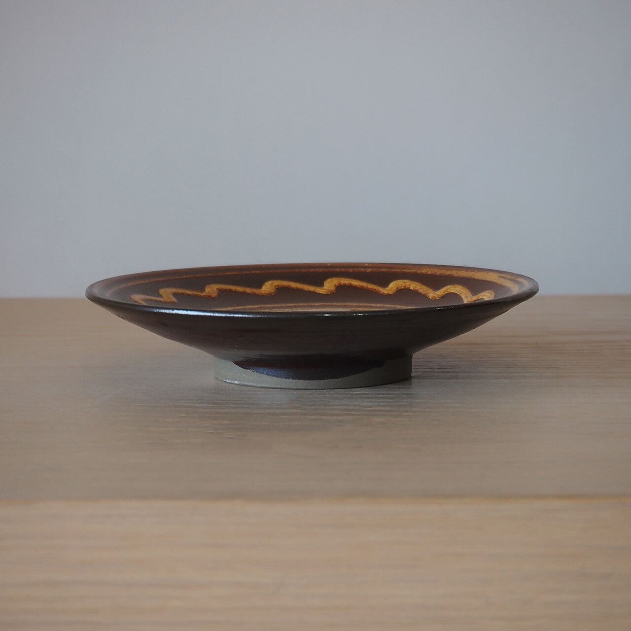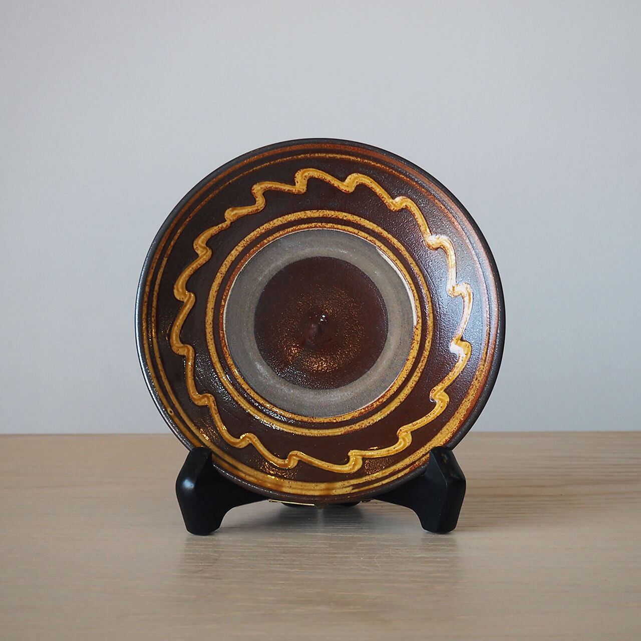 小鹿田焼 坂本浩二窯 5寸皿(飴/ポン描き)