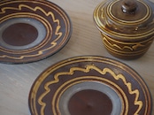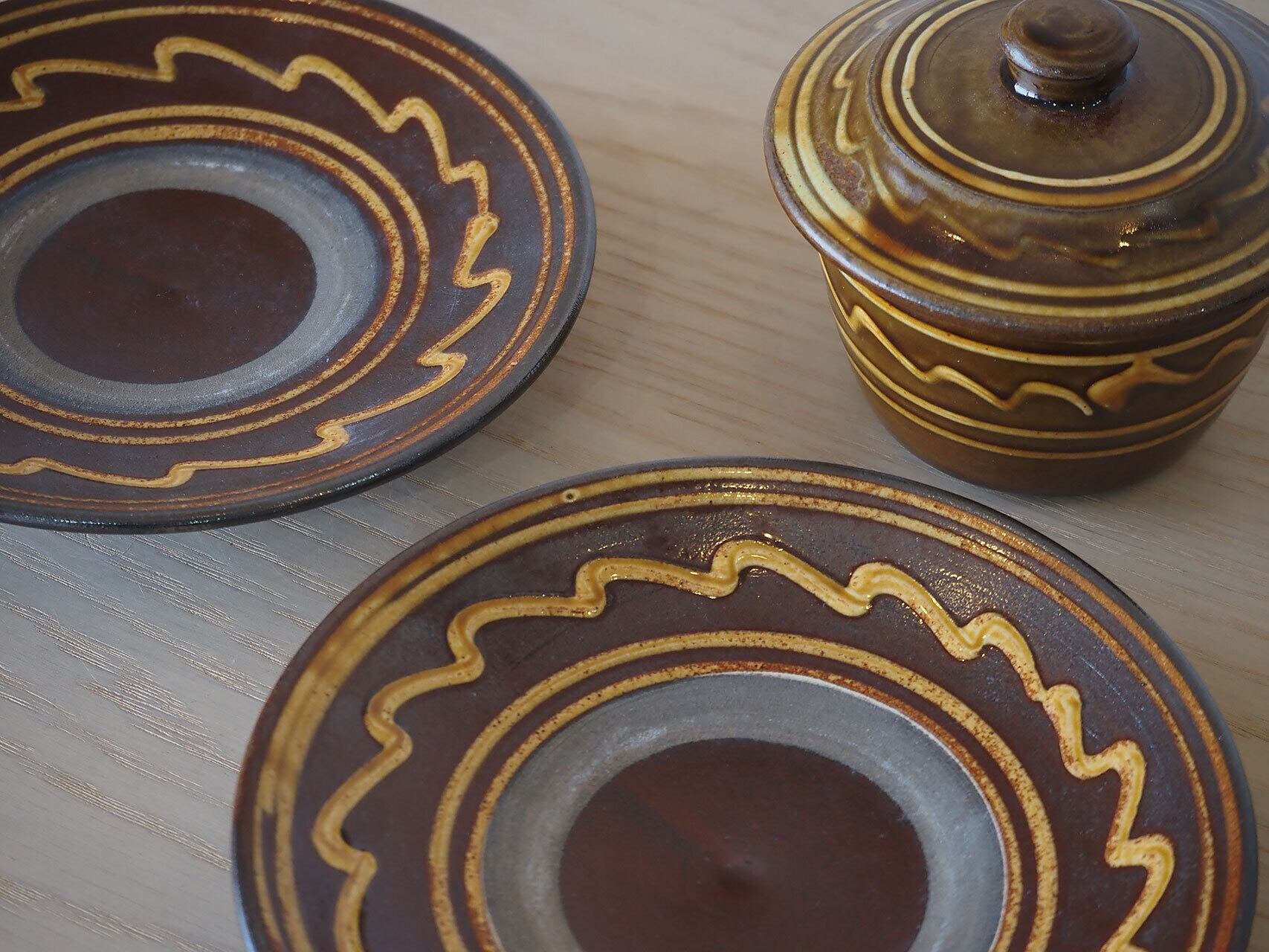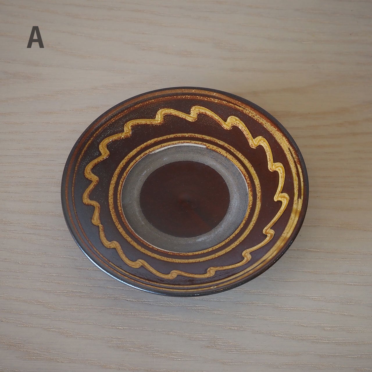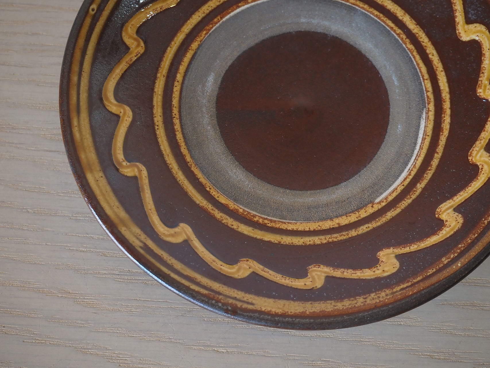 小鹿田焼 坂本浩二窯 5寸皿(飴/ポン描き)