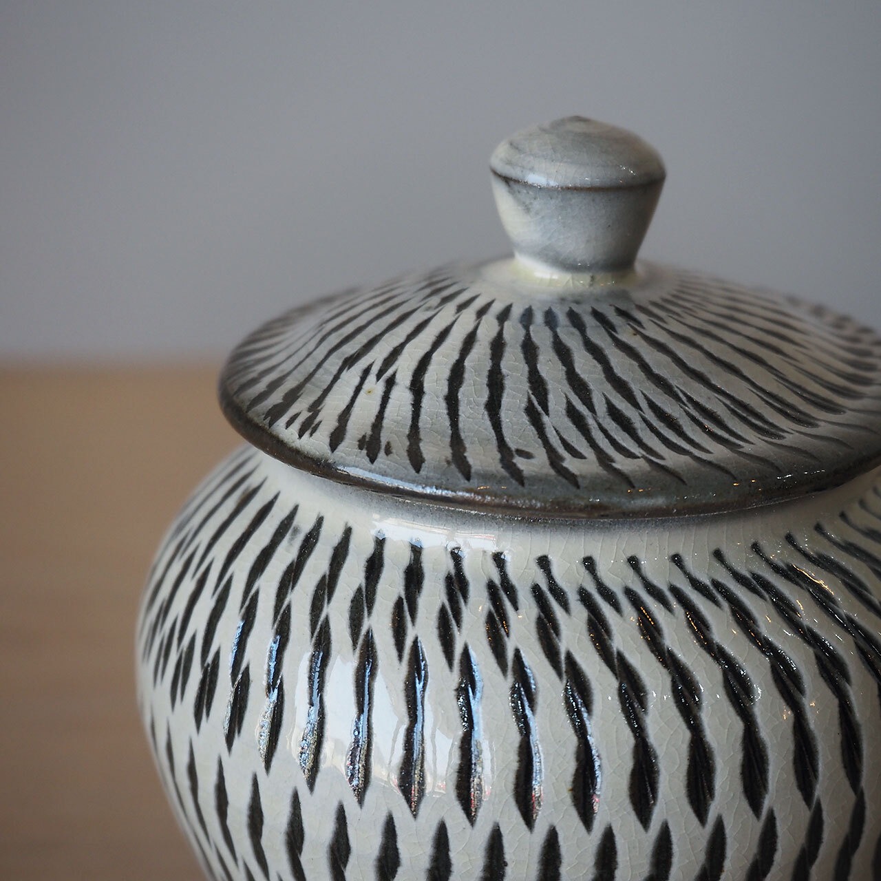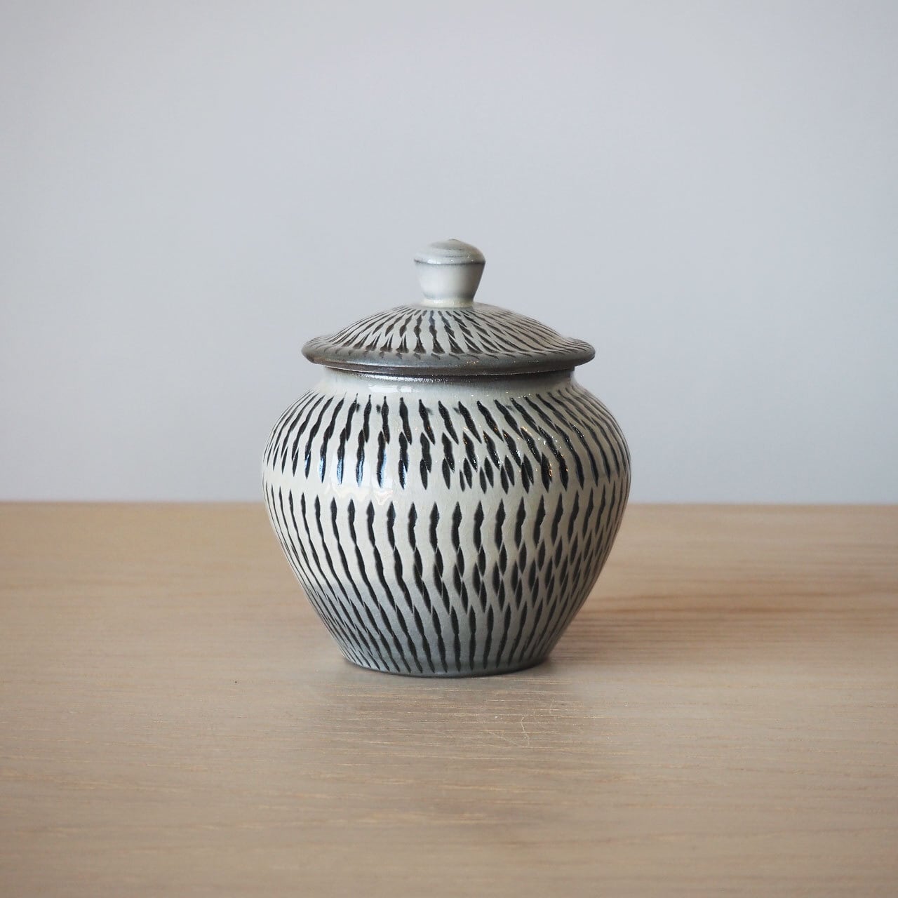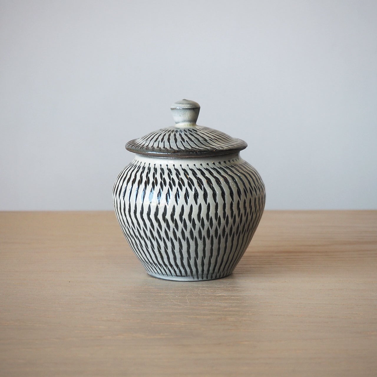 小鹿田焼 坂本浩二窯 1合壺(白/飛び鉋)